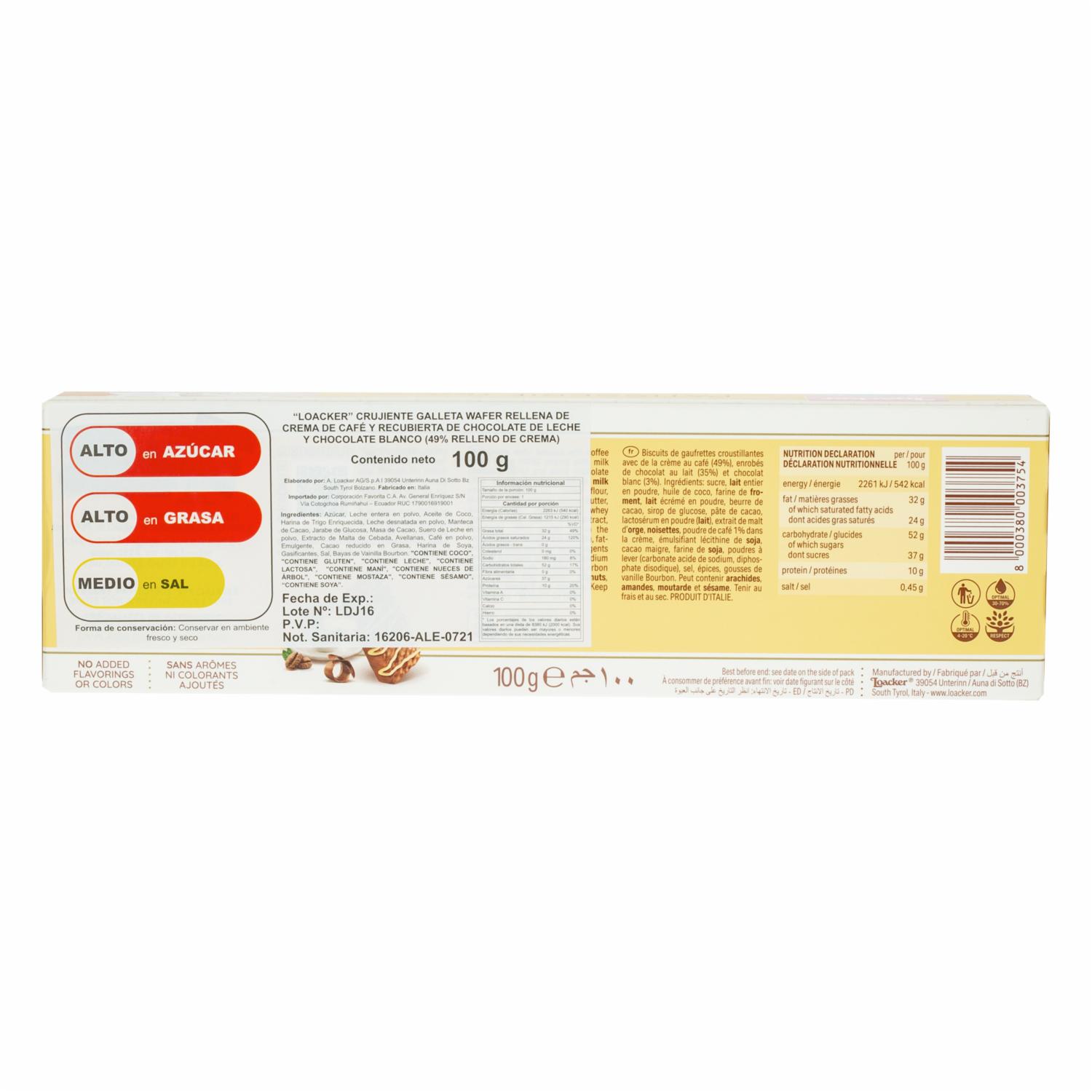 Galleta Wafer Capuccino LOACKER 100 g