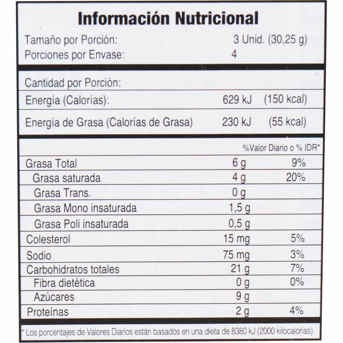 - Leudantes: amonio y carbonatos de sodio, ácido cítrico, leche descremada. Puede contener trazas de soja y frutos secos