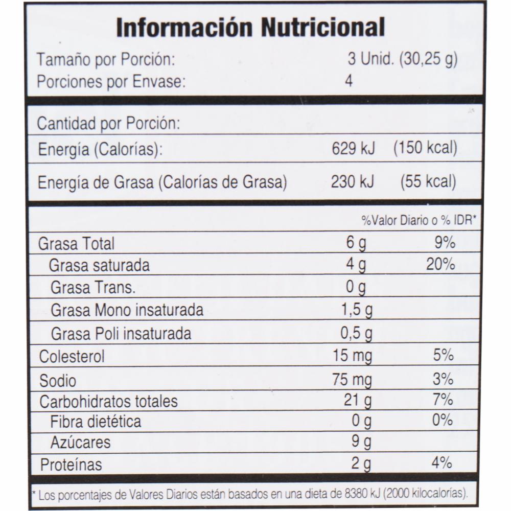 • Leudantes: amonio y carbonatos de sodio, ácido cítrico, leche descremada. Puede contener trazas de soja y frutos secos