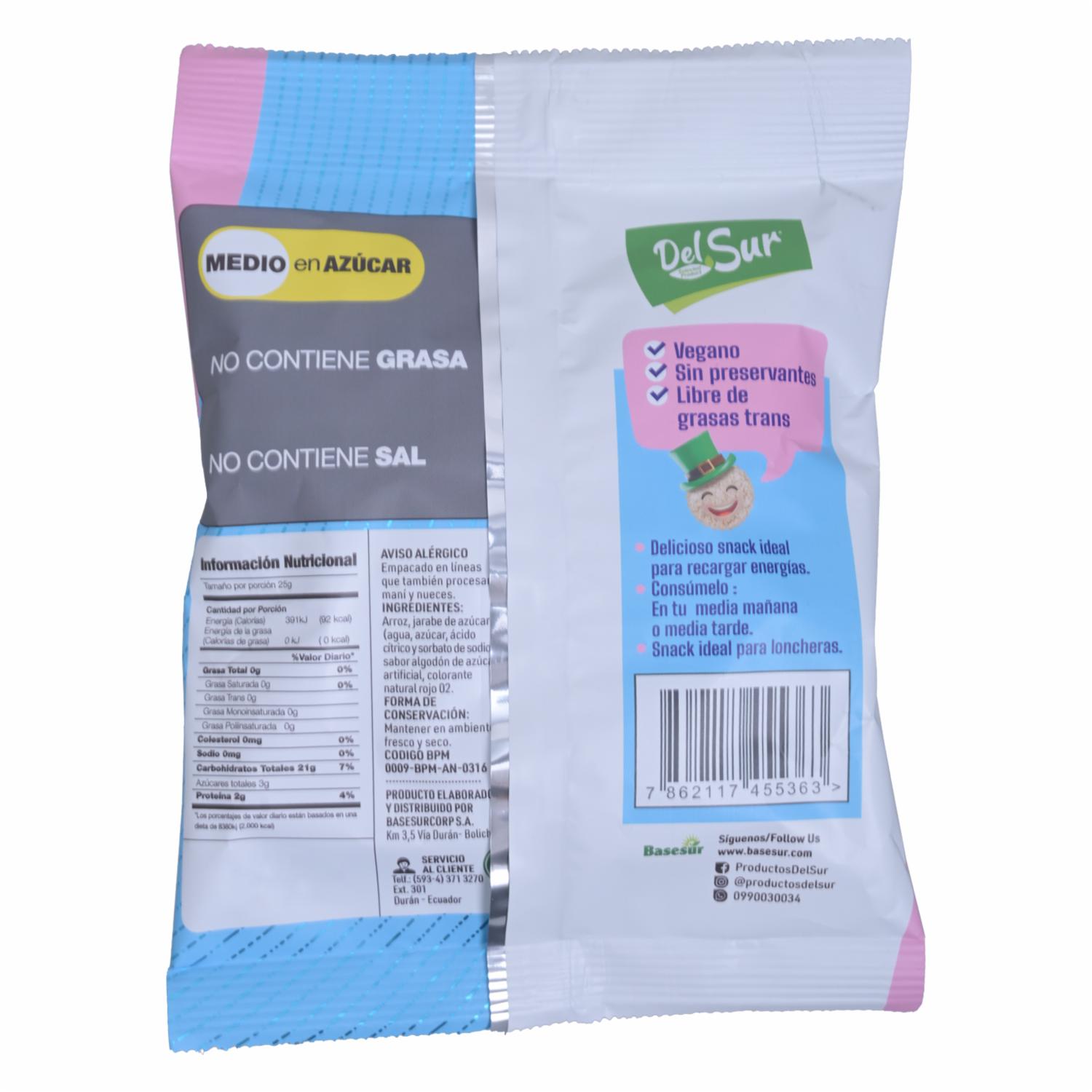 Galletas De Arroz Inflado Sabor Algodón De Azúcar DEL SUR 25 G