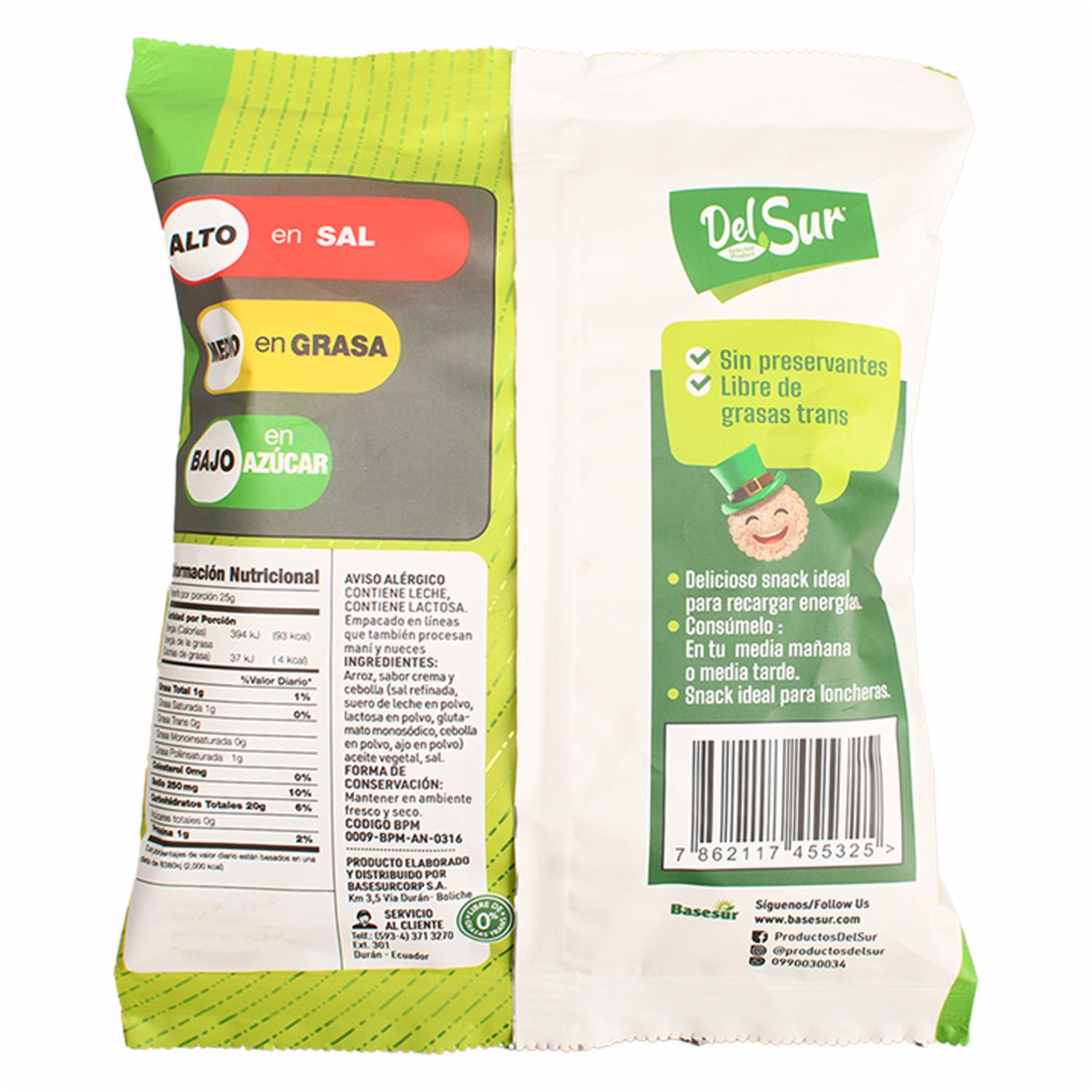 Galletas De Arroz Sabor A Crema Y Cebolla DEL SUR 25 G