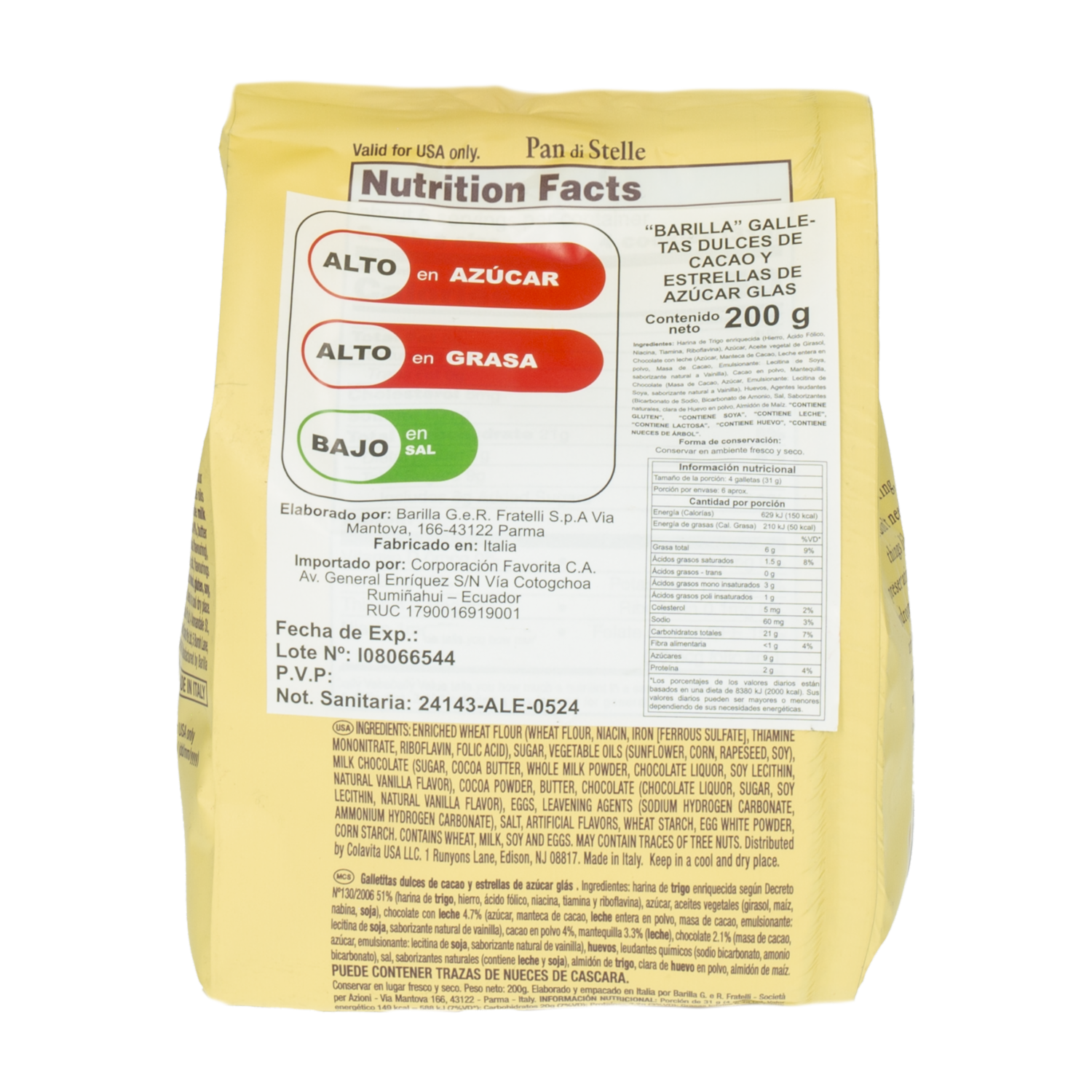 - Las galletas de cacao con estrellas de azúcar glas BARILLA, en presentación de 200 g, ofrecen una combinación irresistible de sabor y textura