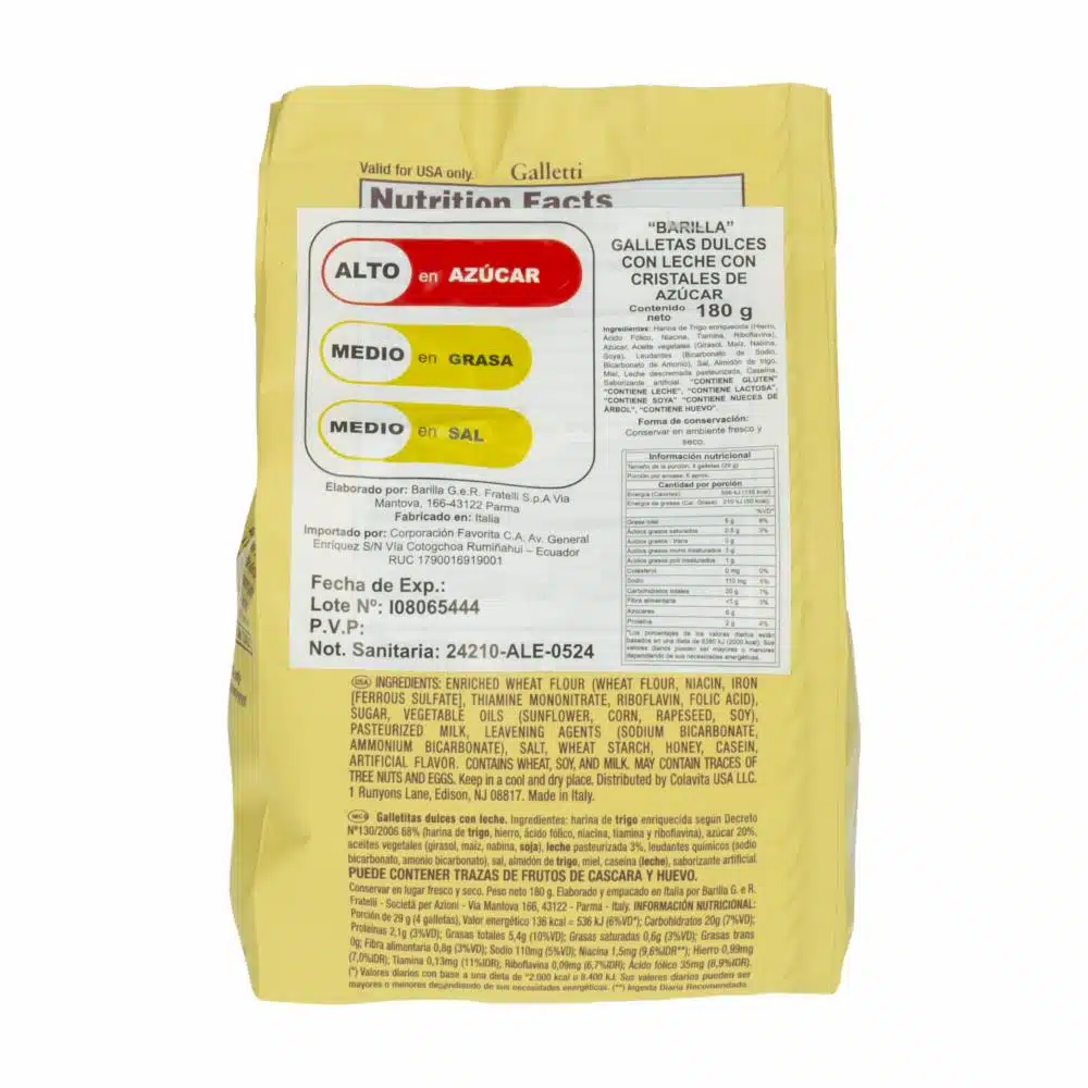 • Las galletas de leche con cristales de azúcar BARILLA, en presentación de 200 g, son un delicioso y crujiente snack ideal para acompañar el café, té o disfrutar solo