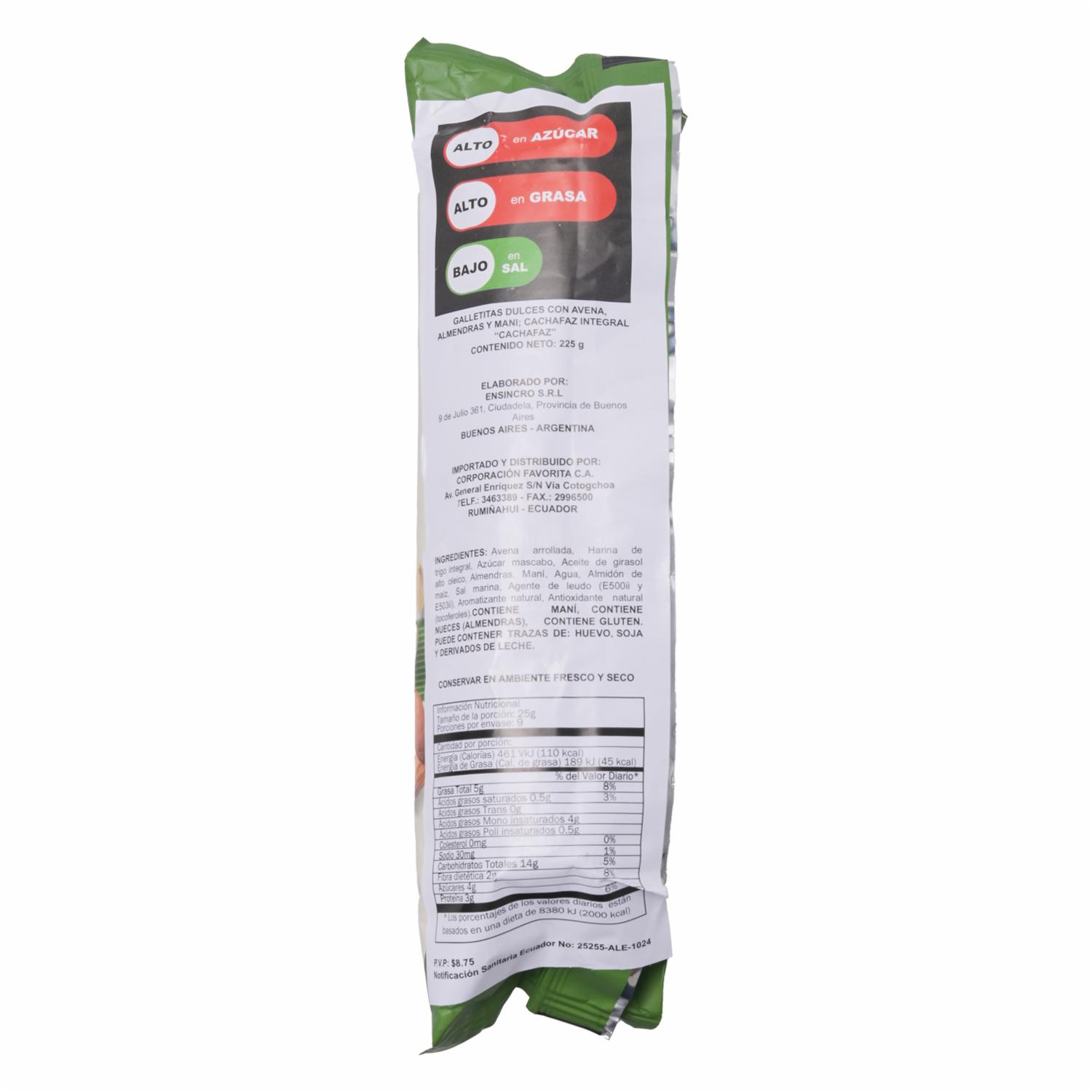 Galletas Integrales De Avena Almendras Y Maní CACHAFAZ 225 G