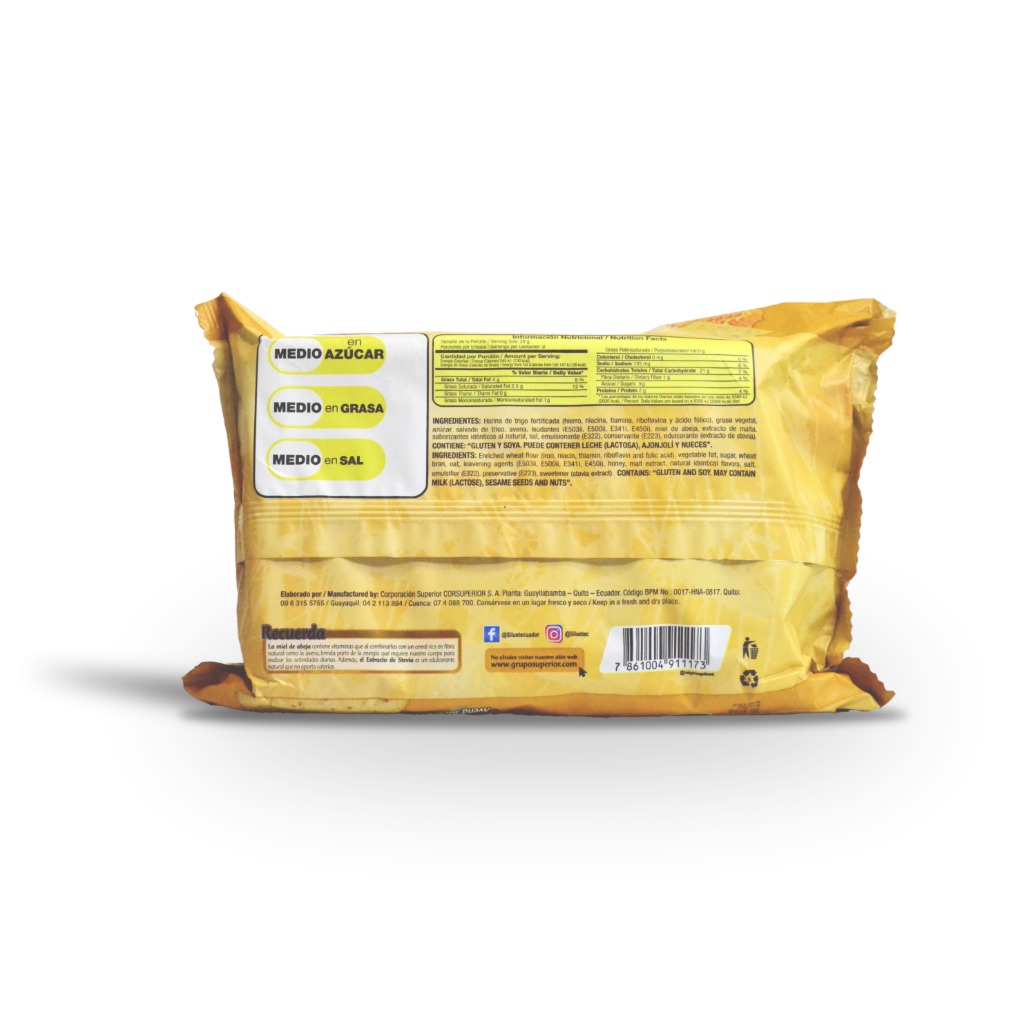 Galleta Siluet es ideal para quienes buscan verte y sentirse bien con una opción deliciosa y nutritiva. La miel es una fuente de energía natural, mientras que la avena aporta nutrientes como manganeso, fósforo y magnesio
