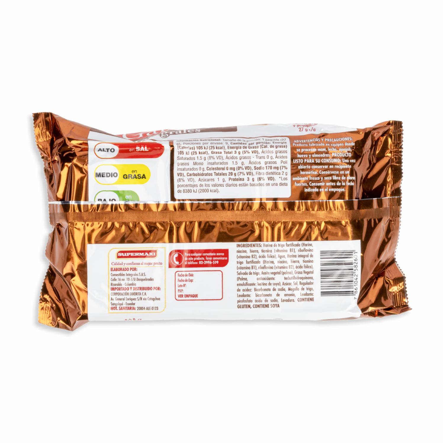 Galletas Integrales SUPERMAXI 243 G – SUPERMAXI. Disponible en nuestros locales. Precio y stock pueden variar según la tienda.