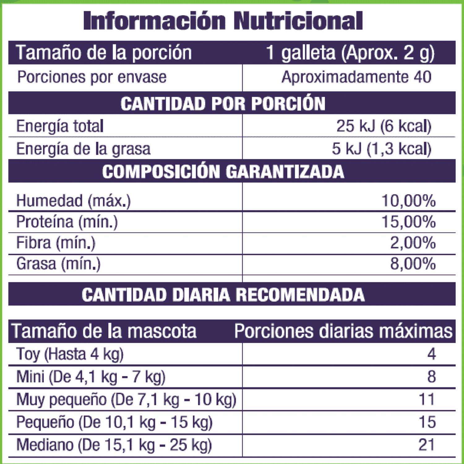 - Cada galleta tiene un mínimo de 15% de proteína