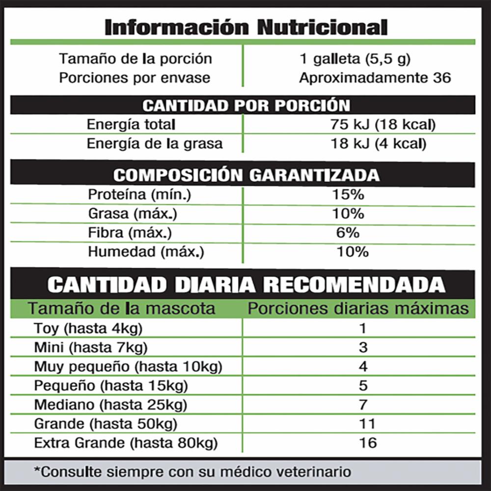 • Snacks para tu perro, horneados como si fueran hechos en casa. La rigidez de nuestras galletas es adecuada para realizar una limpieza mecánica de sus dientes, a través del proceso natural de masticación