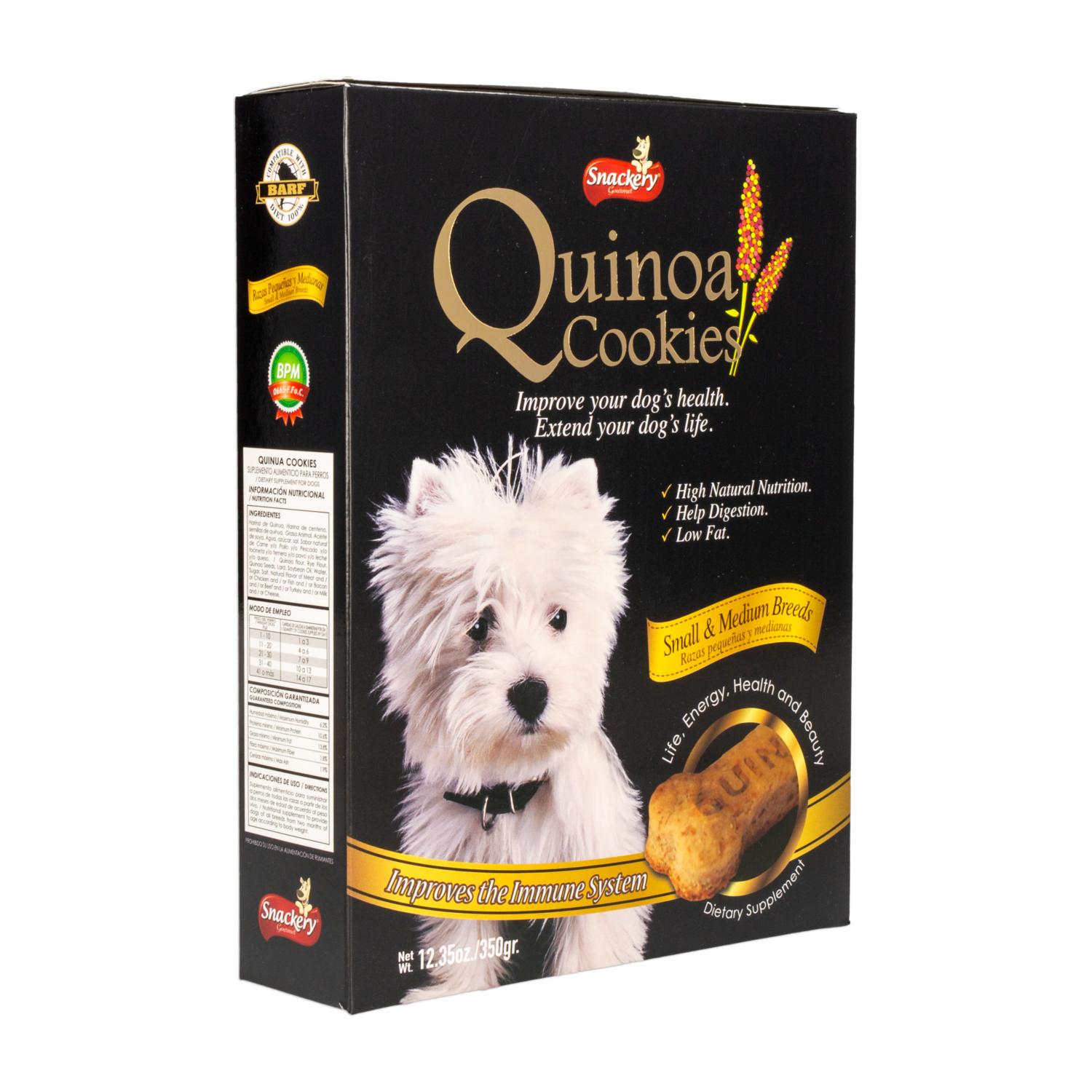 Galletas Para Perros De Quinua Para Razas Pequeñas QUINOA COOKIES 350 G – QUINOA COOKIES. Disponible en nuestros locales. Precio y stock pueden variar según la tienda.