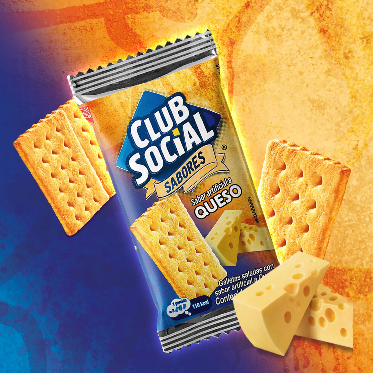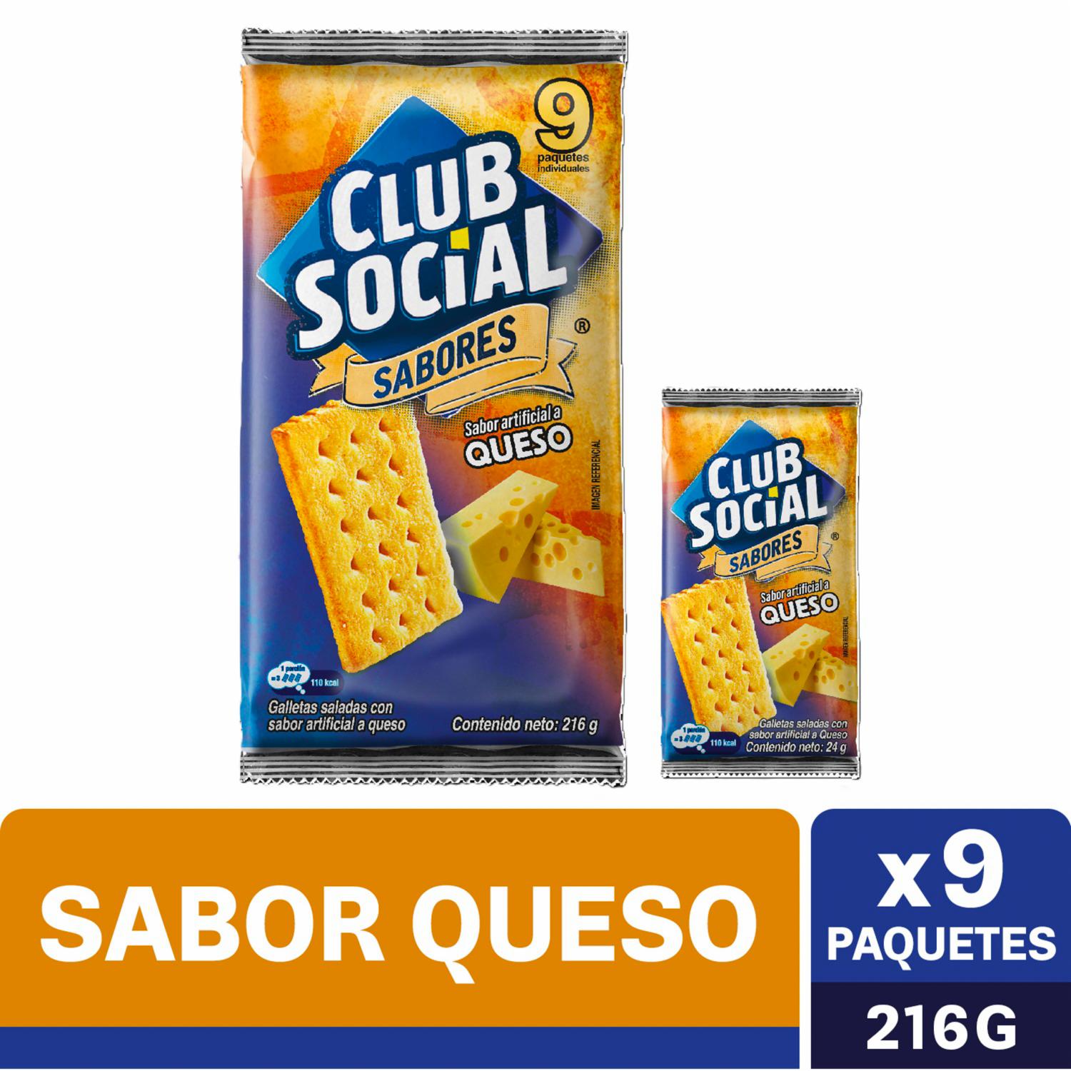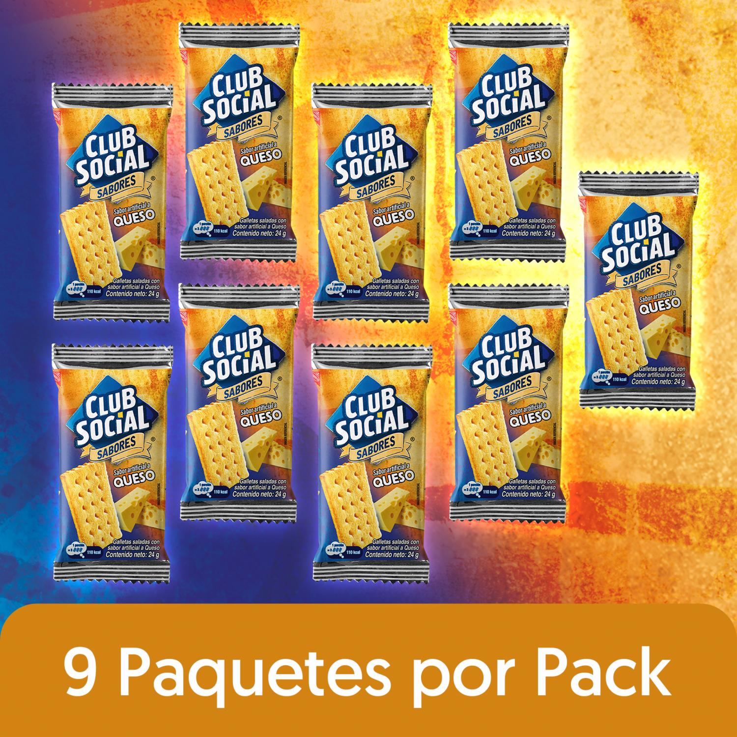 Galletas Saladas Club Social sabor Queso 9pack x 24g c/u con su caracteristico color dorado en formato individual con 3 galletas cada uno, ideal para llevar y acompañar tus comidas. Disfruta en cada mordida de su crocancia y sabor único, con una porción es perfecta para disfrutar en el desayuno, trabajo o cuando quieras algo delicioso. También es una gran opción para picoteos y reuniones con familiares o amigos