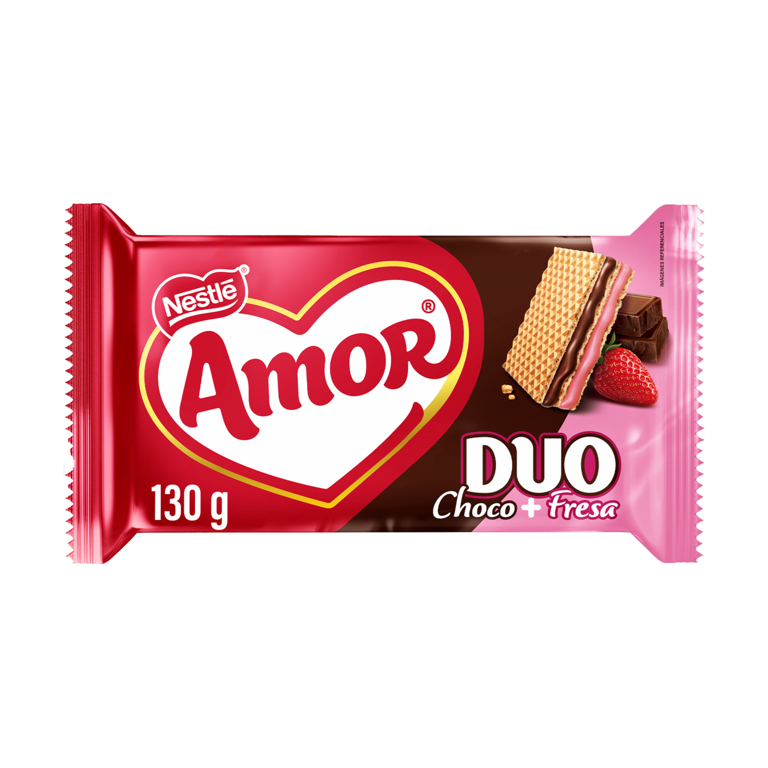 Galletas Wafer Duo Chocolate+Fresa AMOR 130 G – AMOR. Disponible en nuestros locales. Precio y stock pueden variar según la tienda.