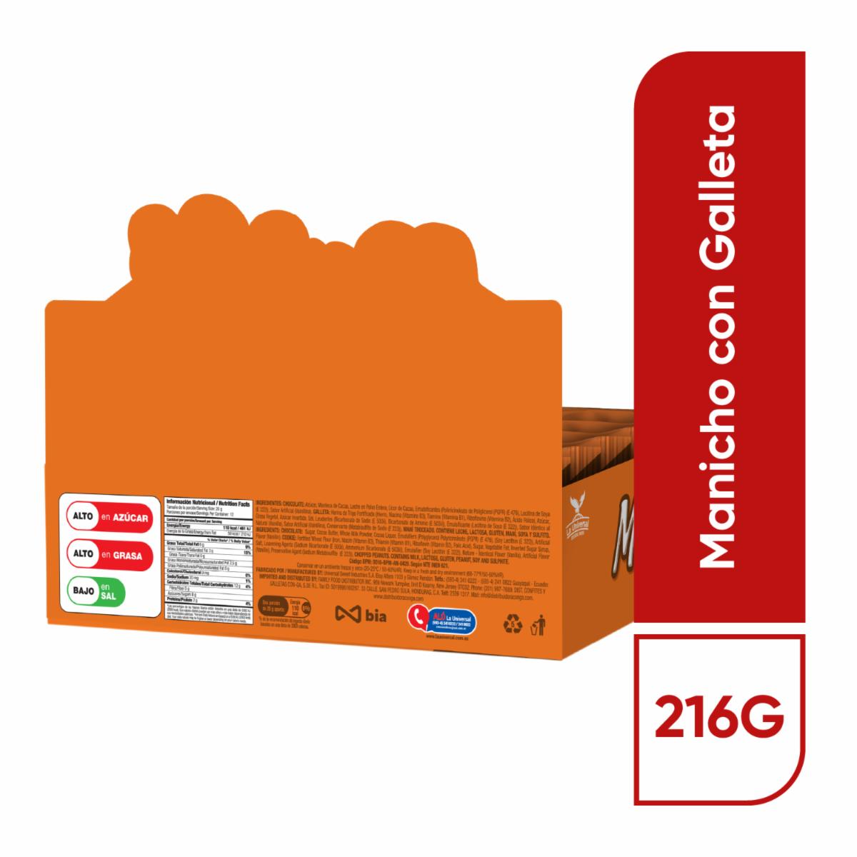 Galletas Waffer Con Chocolate Y Maní MANICHO 216 G