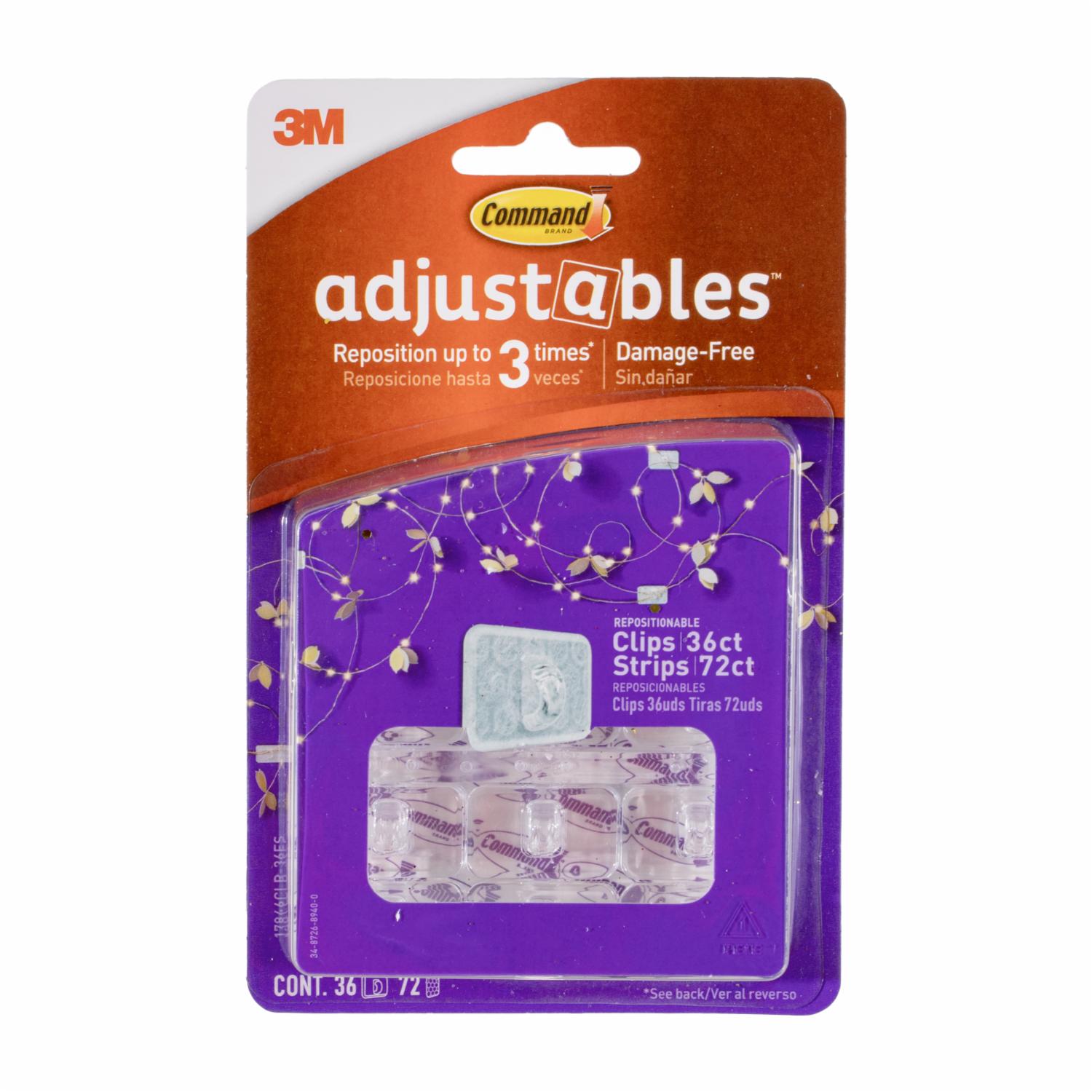 - Los "Ganchos Ajustables 1/2 Lb Hooks COMMAND 36 Uds" son ganchos de la marca "COMMAND" que se destacan por ser ajustables y capaces de soportar hasta 1/2 libra de peso