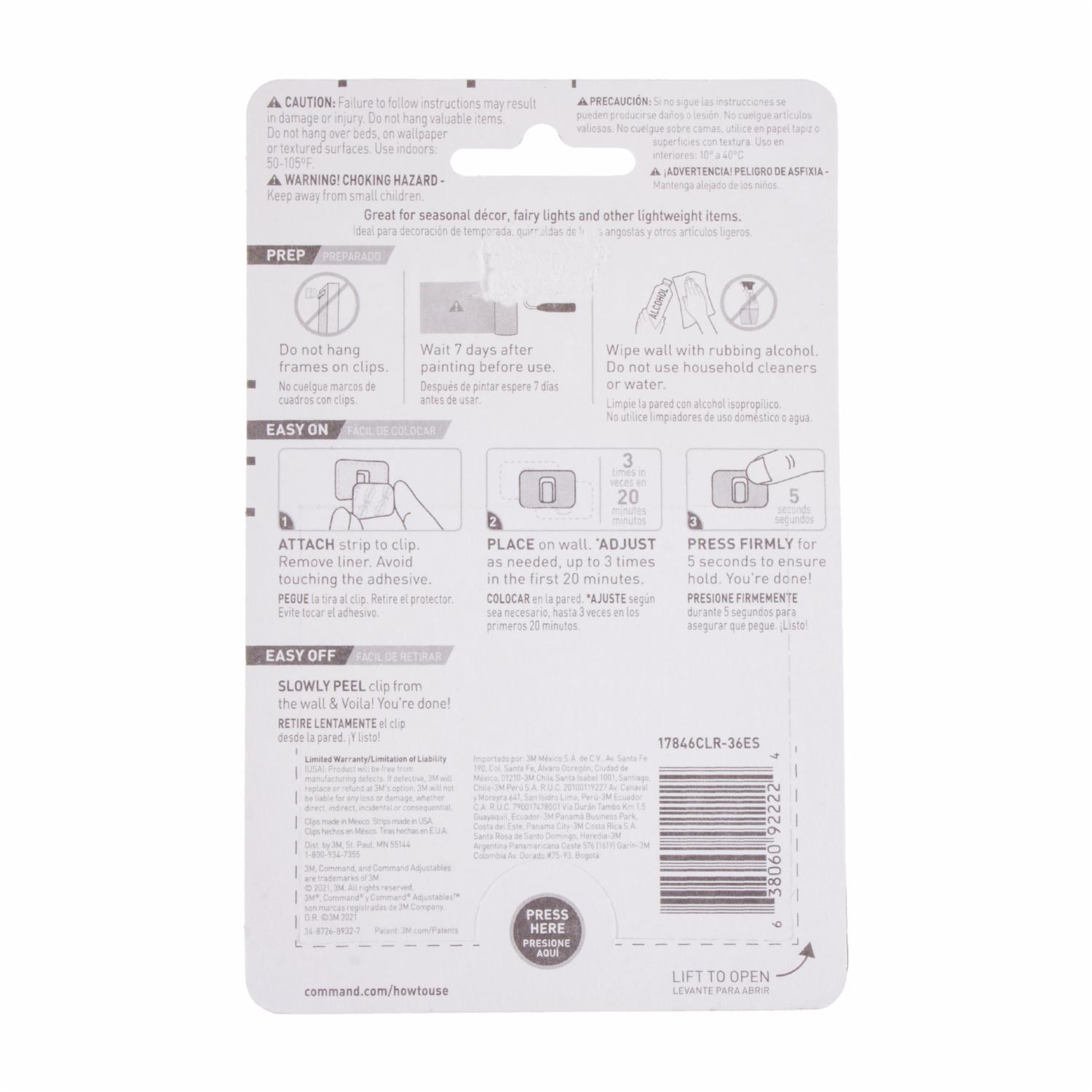 Gancho Ajustable 1/2 Lb Hooks COMMAND 36 Uds