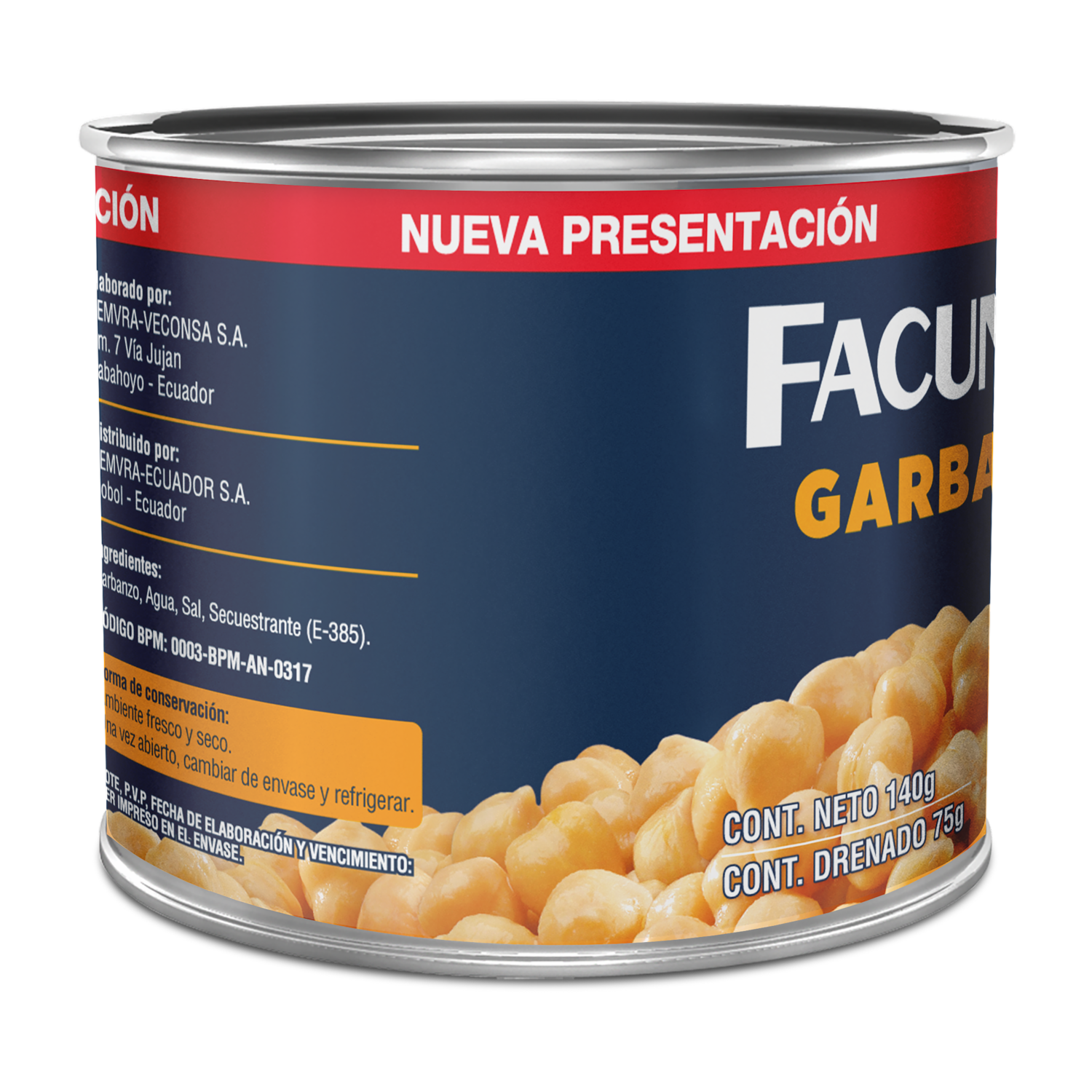 Garbanzo Enlatado FACUNDO 140 G – FACUNDO. Disponible en nuestros locales. Precio y stock pueden variar según la tienda.