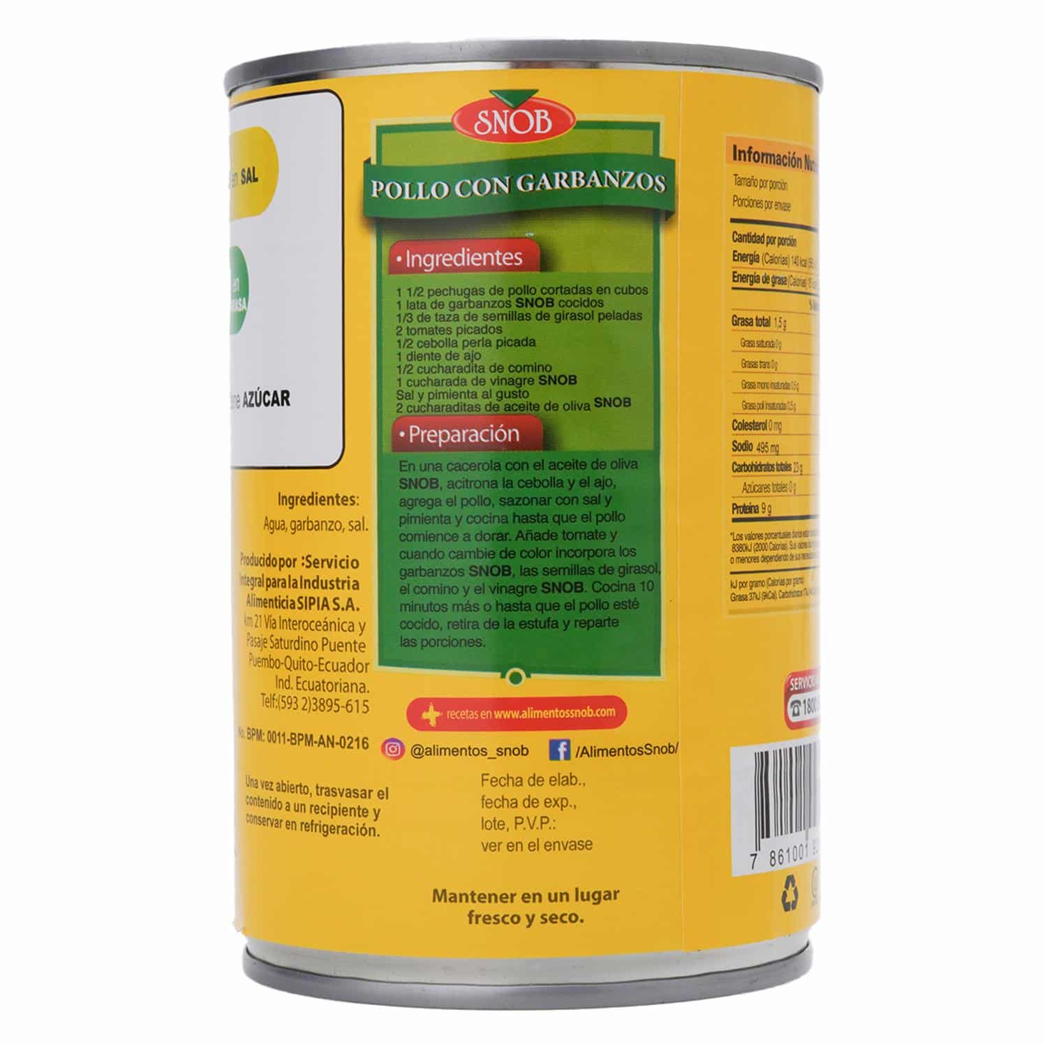 Garbanzo Entero SNOB Lata – SNOB. Disponible en nuestros locales. Precio y stock pueden variar según la tienda.