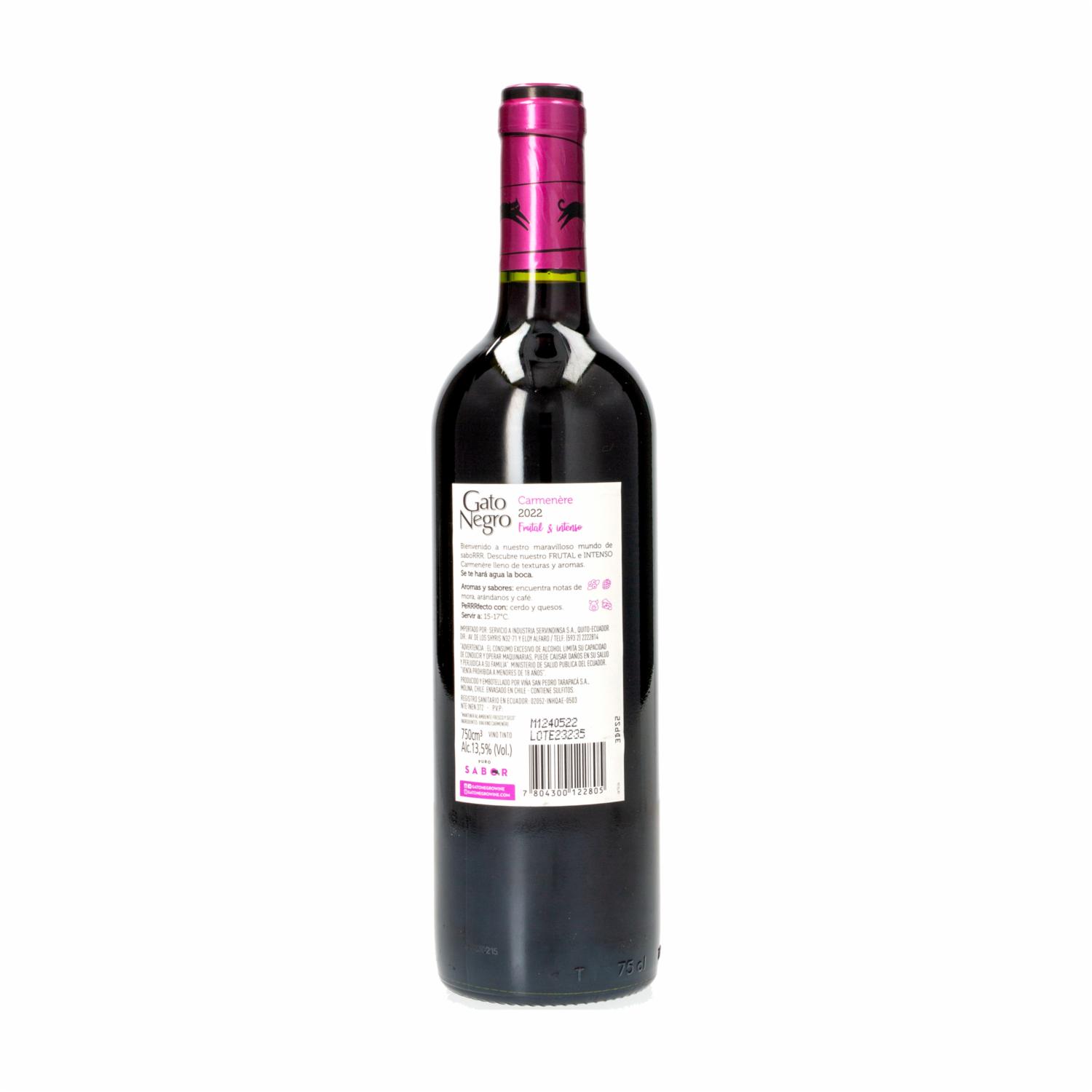 consultando preciosVino Tinto Carmenere GATO NEGRO 750 ML – GATO NEGRO. Disponible en nuestros locales. Precio y stock pueden variar según la tienda.