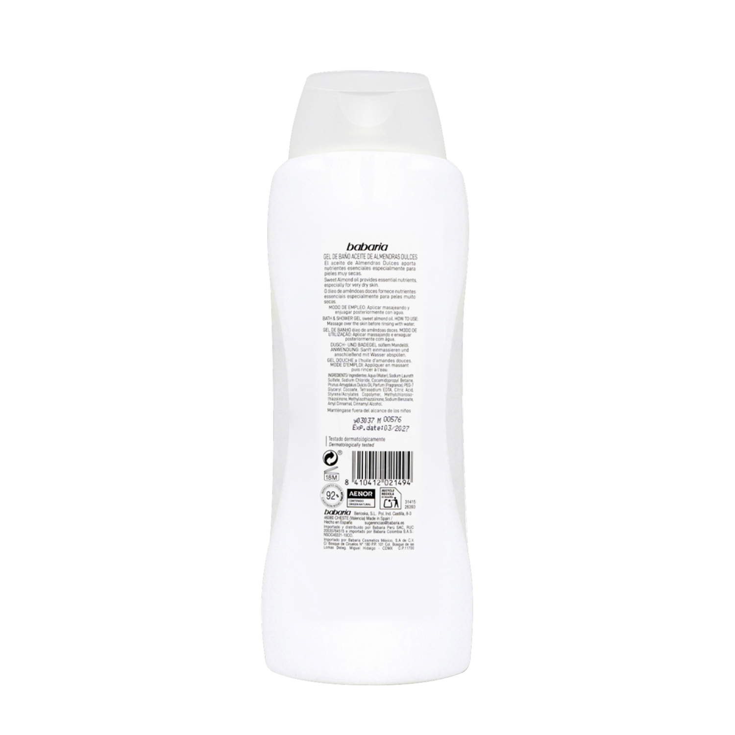 Gel De Baño Con Aceite De Almendras Dulces Cream Sensations BABARIA 600 Ml