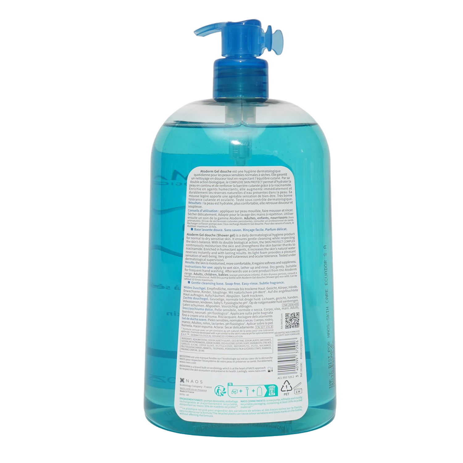 - Disfruta una limpieza suave y nutritiva con el gel de ducha Atoderm de Bioderma, ideal para pieles normales a secas y sensibles. Su fórmula delicada limpia cuerpo, rostro y manos, dejando la piel hidratada, fresca y protegida en cada uso. Perfecto para el cuidado diario de toda la familia