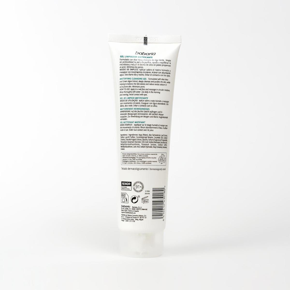 Limpiador Facial En Gel Matificante Con Aloe Vera Y Alga Verde BABARIA 150 Ml