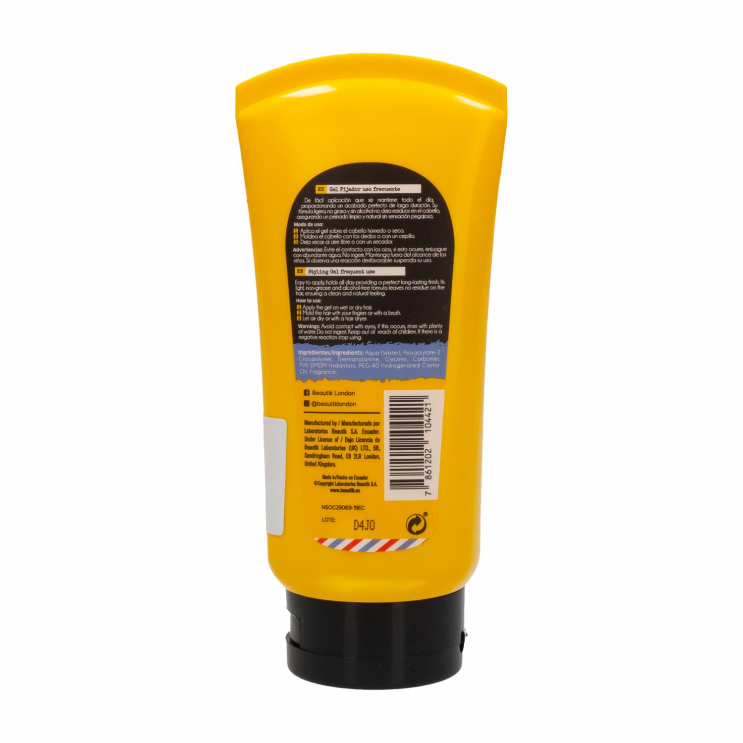 - Gel fijador para un acabado perfecto de larga duración, no deja residuos en el cabello asegurando un peinado limpio, natural y sin sensación pegajosa