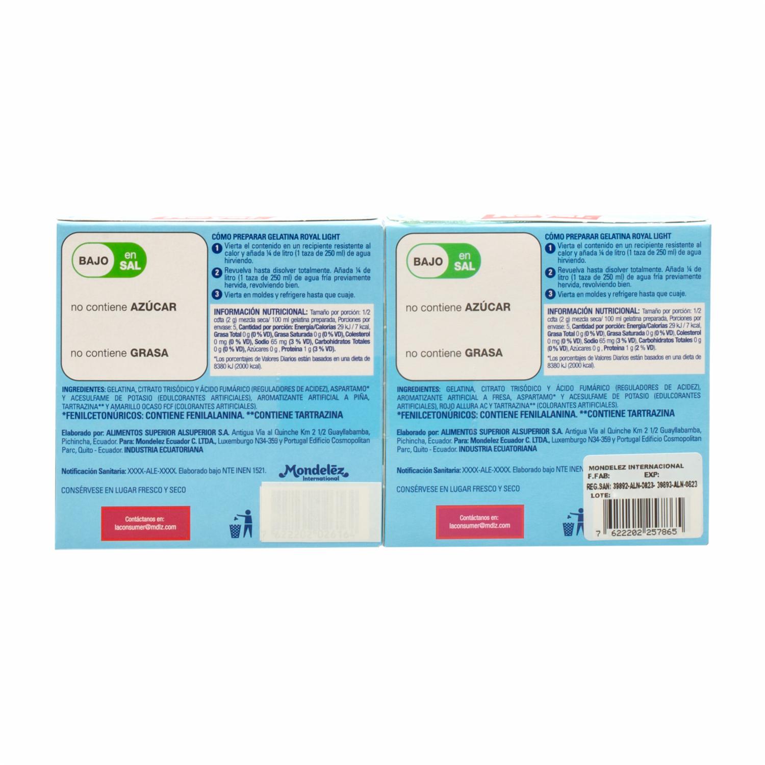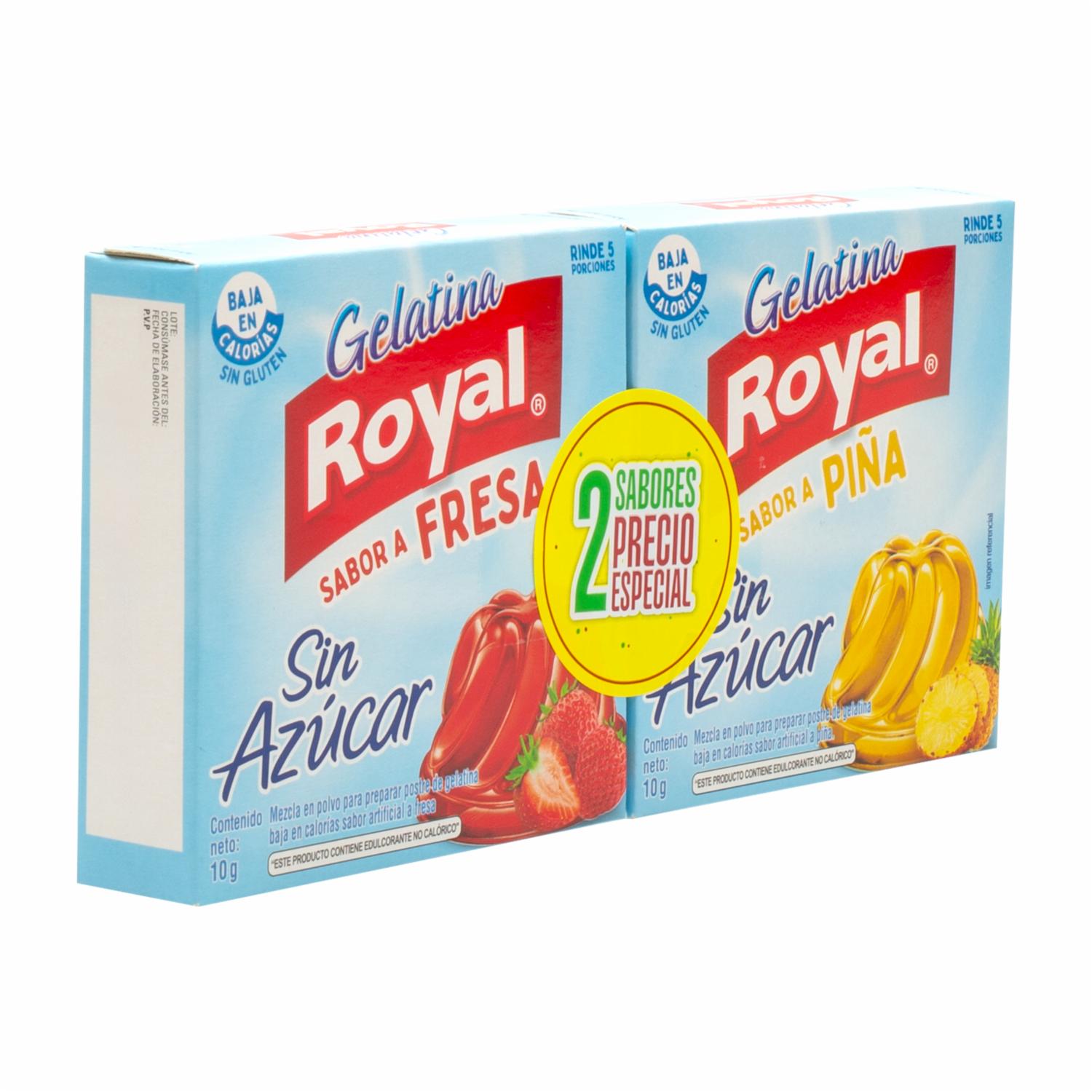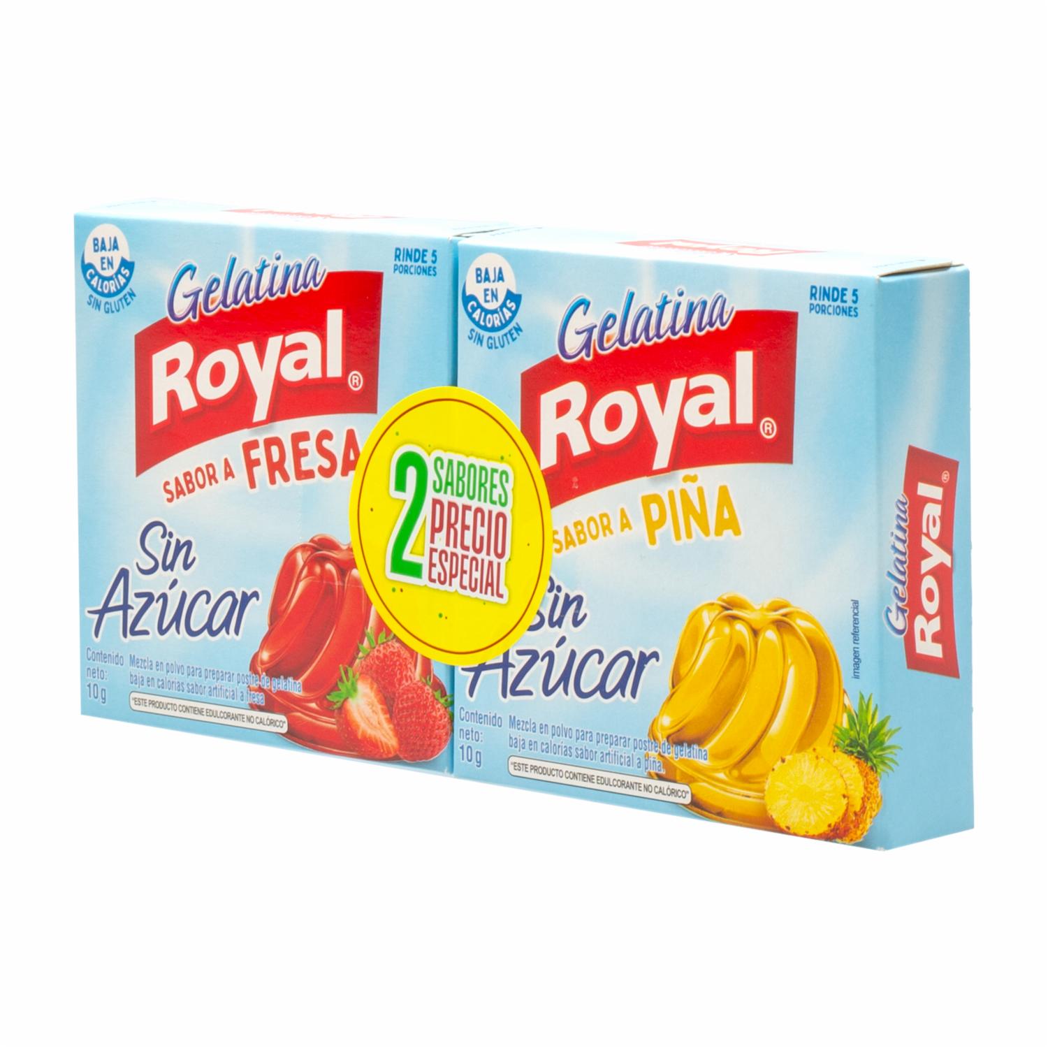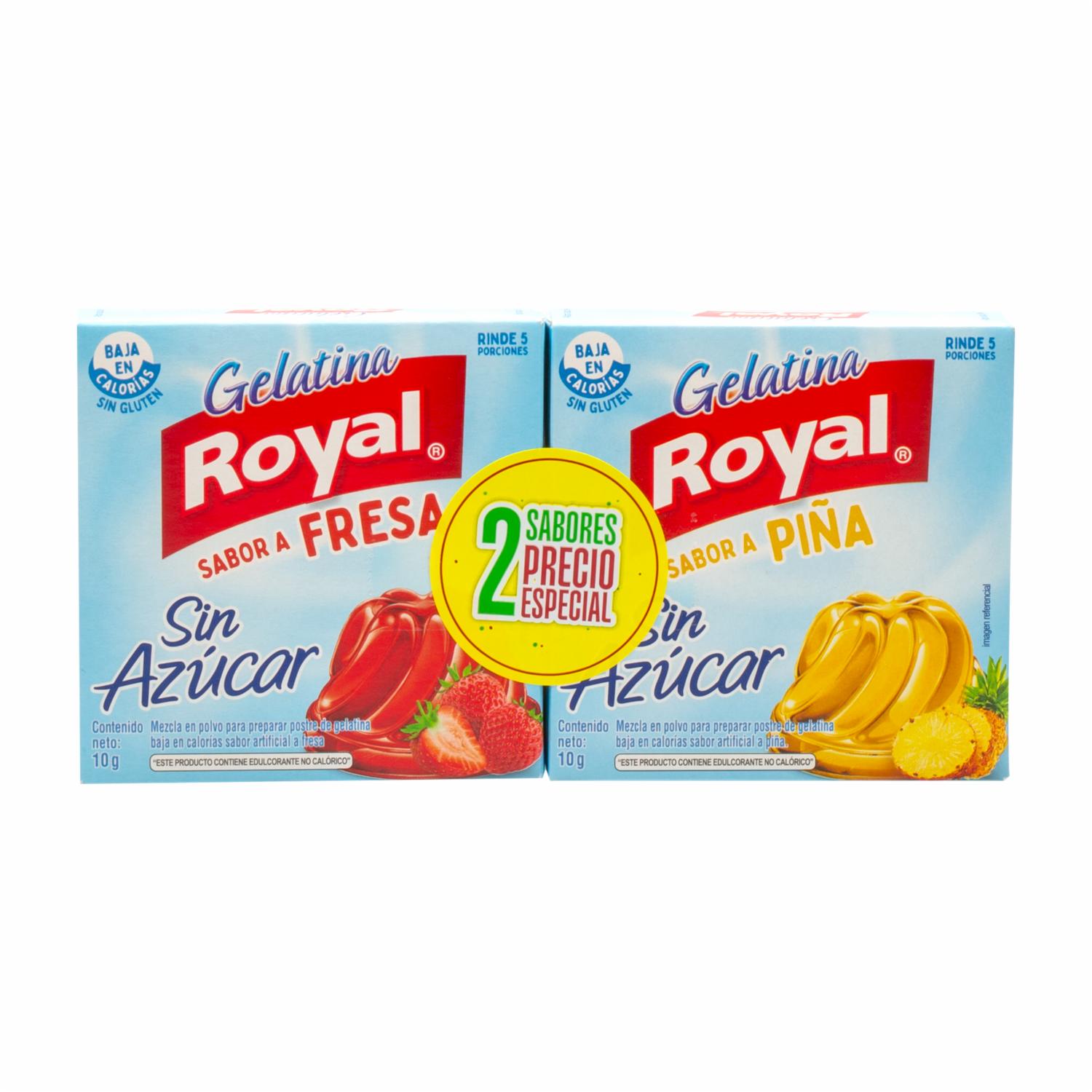 Gelatina En Polvo Light Sin Azúcar Sabor A Fresa Y Piña ROYAL 2x10G
