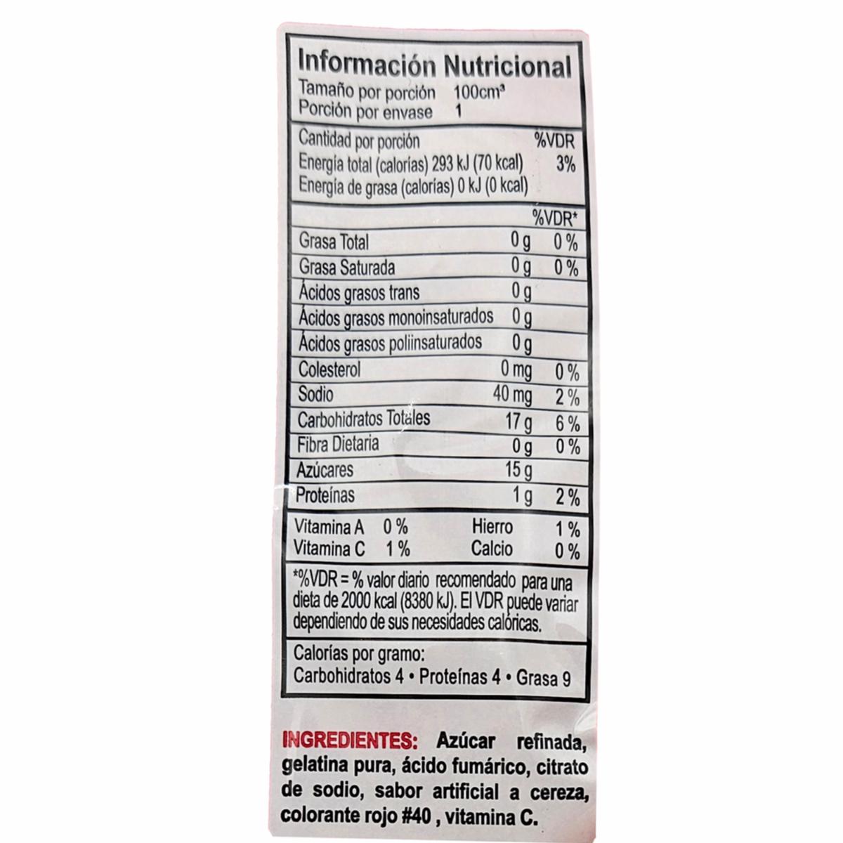 - Enriquecida con vitamina C, esta gelatina no solo ofrece un sabor a cereza auténtico, sino que también aporta un beneficio nutritivo adicional. Fácil de preparar, es una opción conveniente para crear postres sabrosos y saludables en cualquier ocasión