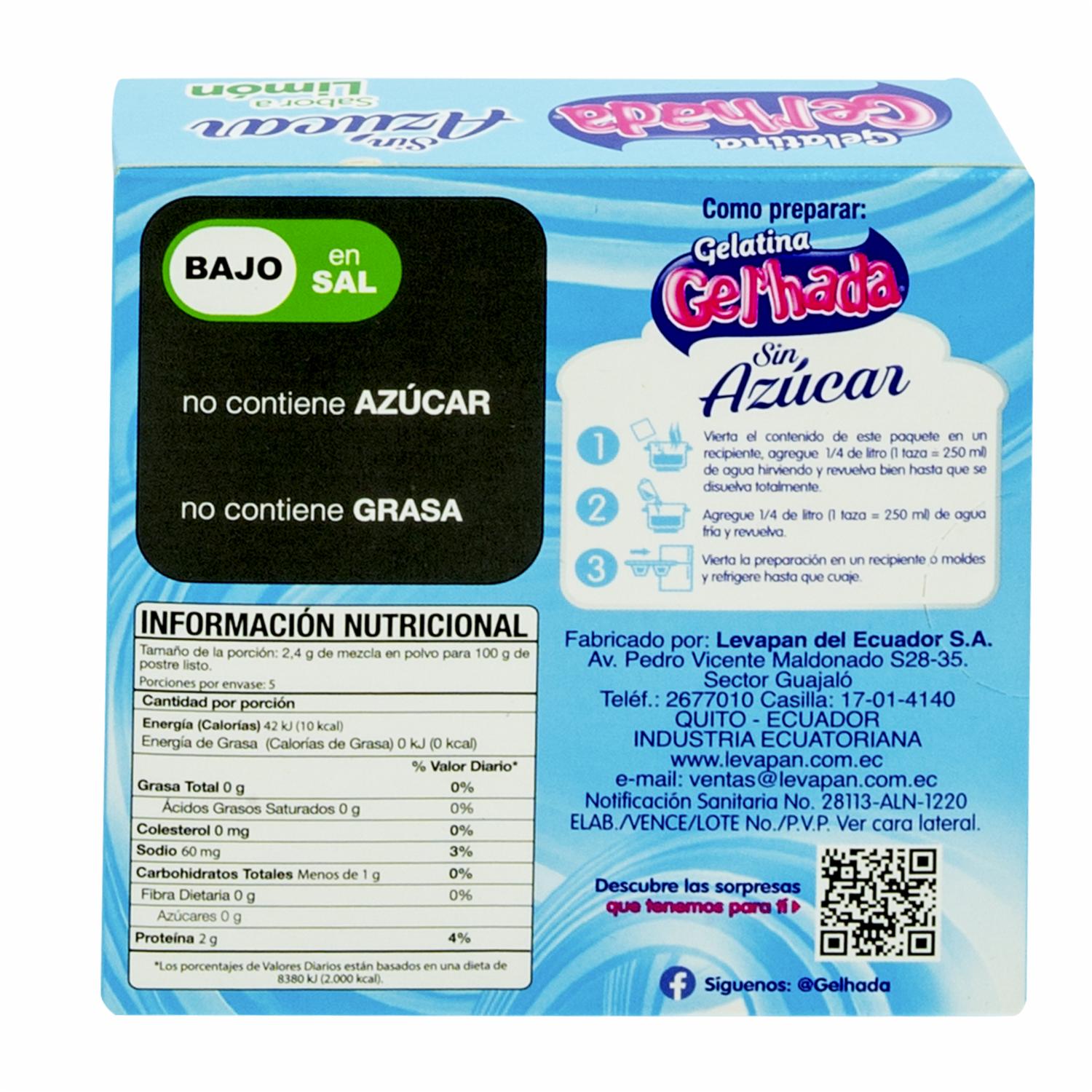 consultando preciosGelatina Limón Sin Azucar GEL’HADA Sobre – GEL´HADA. Disponible en nuestros locales. Precio y stock pueden variar según la tienda.