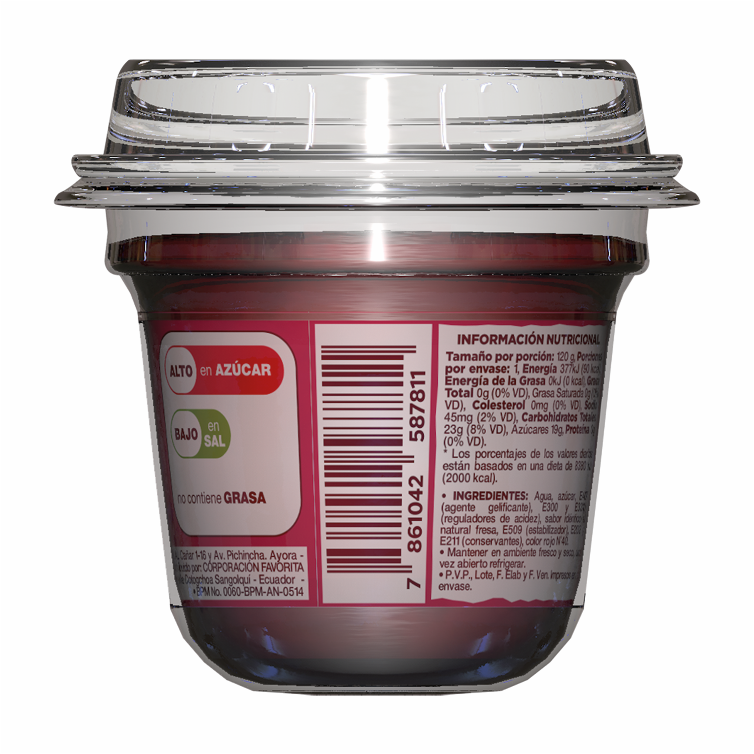 Disfruta de una gelatina lista para consumir con un delicioso sabor a fresa. Ideal para un postre rápido y refrescante que a todos les gusta