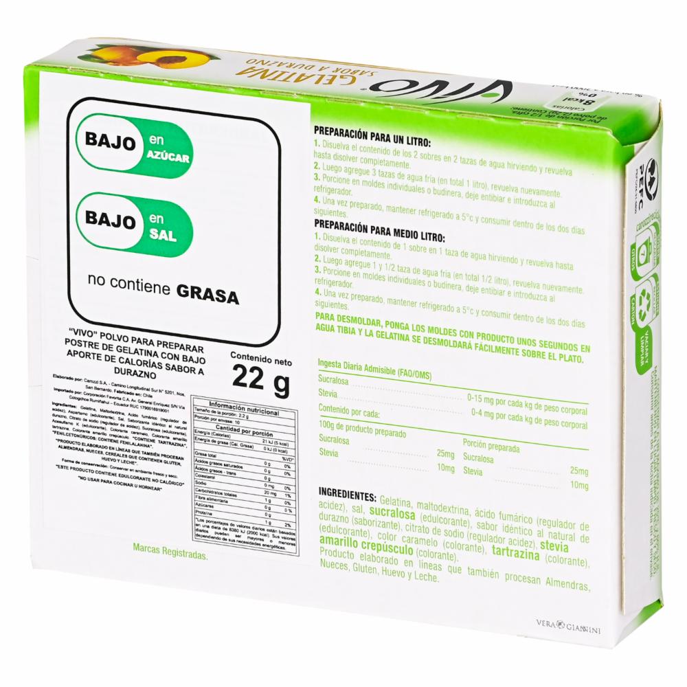 Gelatina en polvo sabor a durazno rinde 10 porciones con aloe vera 0% de azúcar