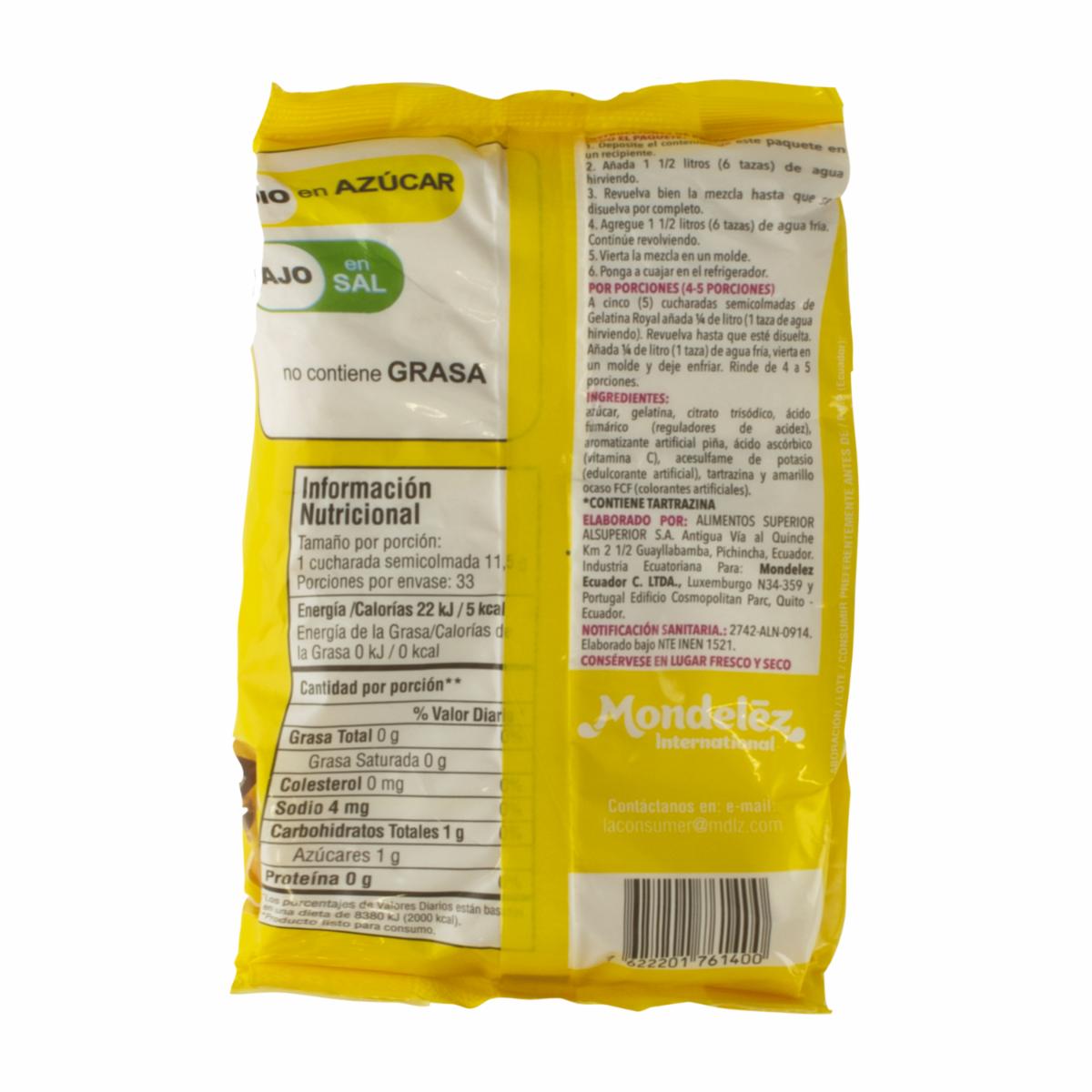 Gelatina Sabor A Piña ROYAL 380 G – ROYAL. Disponible en nuestros locales. Precio y stock pueden variar según la tienda.