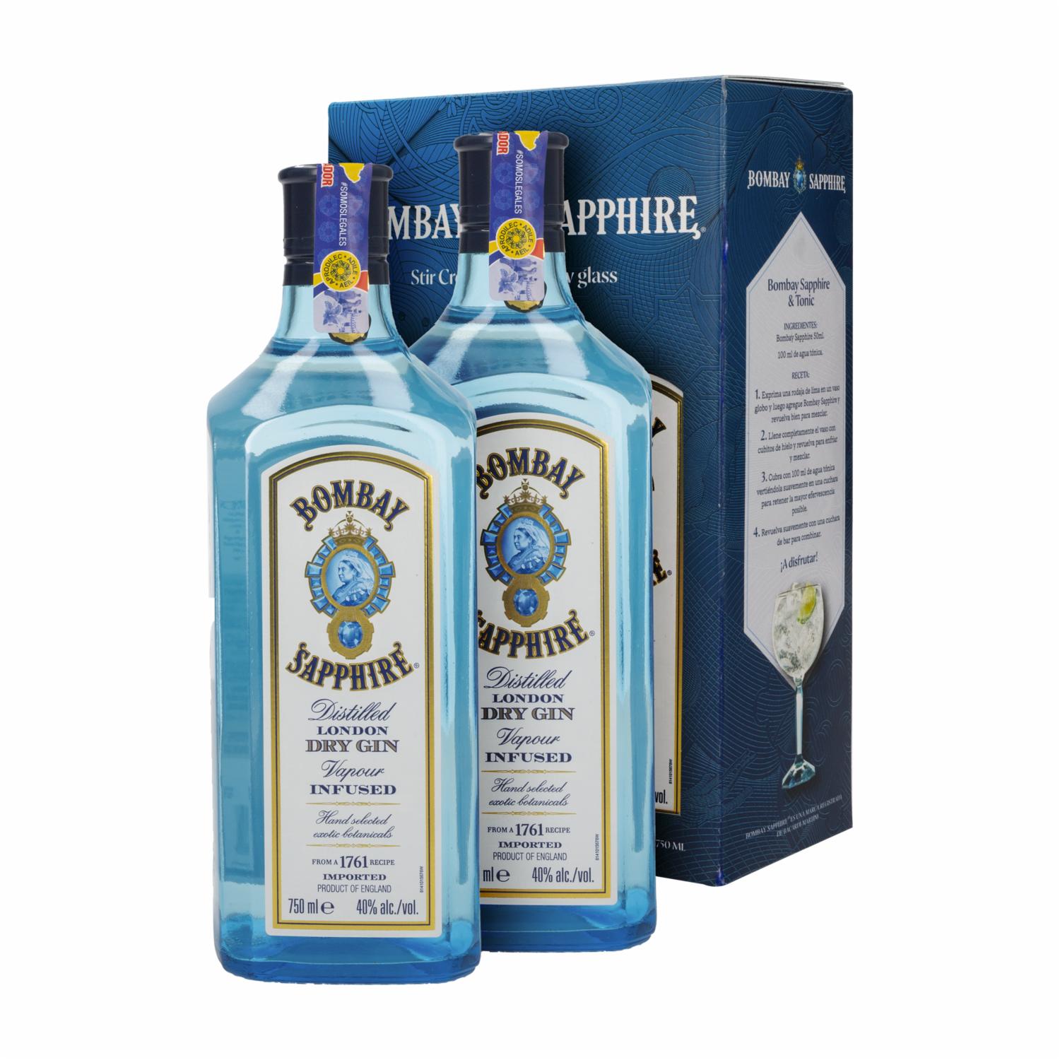 - Experimenta La Elegancia Y El Sabor Distintivo De La Ginebra Sapphire Bombay Con Este Conveniente Pack De Dos Botellas De 750 Ml Cada Una. Esta Ginebra Premium Es Conocida Por Su Complejidad De Sabores Y Su Destilación Cuidadosa De Ingredientes Botánicos Seleccionados