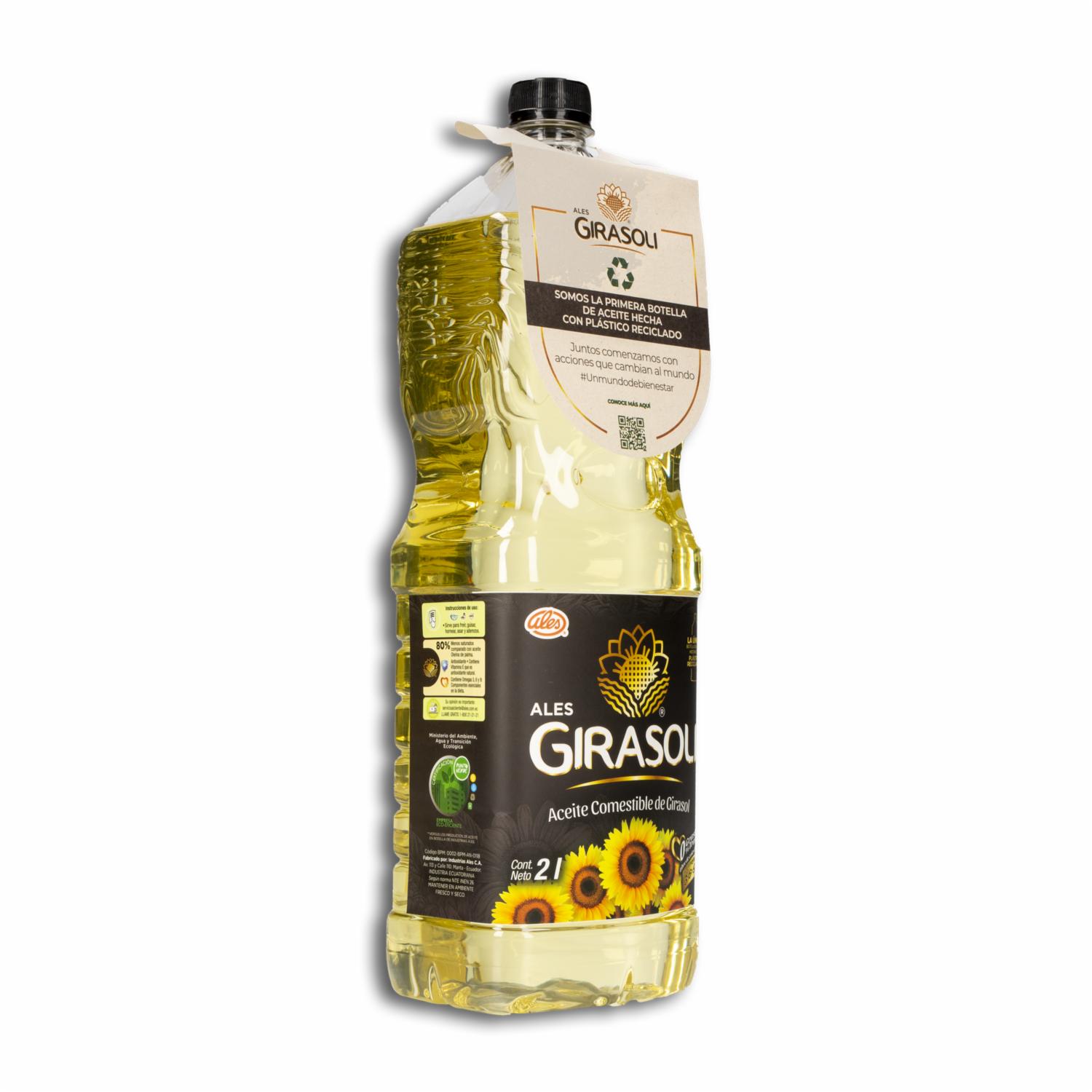 - Descubre la pureza y versatilidad del Aceite Comestible de Girasol GIRASOLI. Con una presentación de 2000 ml, este aceite de alta calidad es ideal para todas tus necesidades culinarias. Extraído de girasoles frescos, GIRASOLI ofrece un sabor neutro y una textura ligera que realza el sabor de tus platillos sin dominarlo
