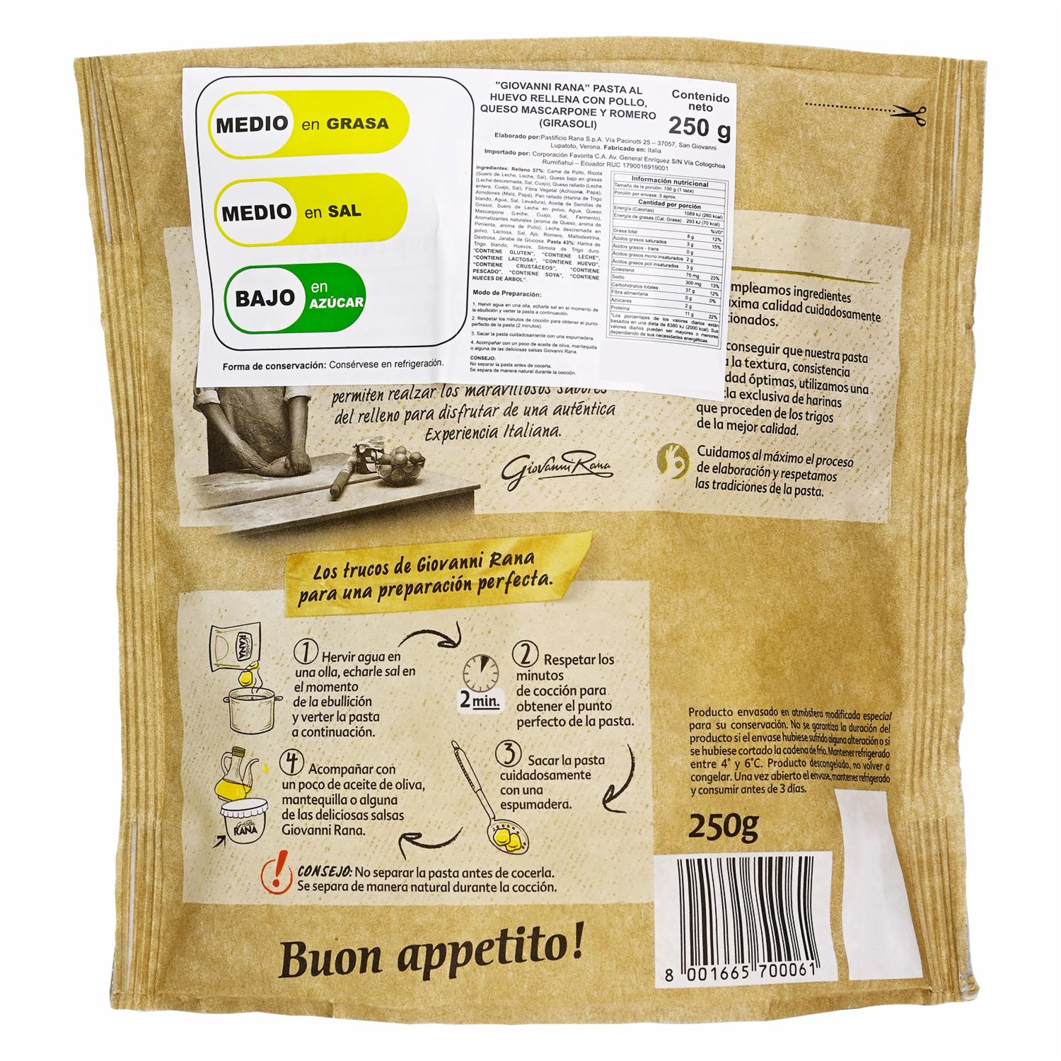 Girasoli Pollo, Mascarpone Y Romero GIOVANNI RANA 250 G