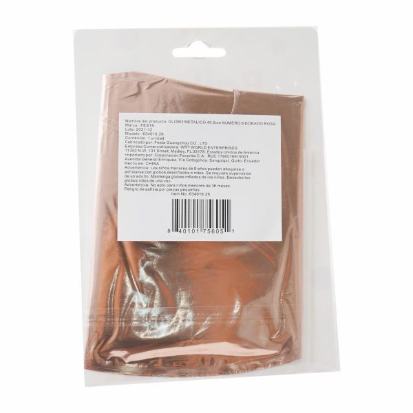 Globo Metálico Dorado Rosa BALLOON Número 6
