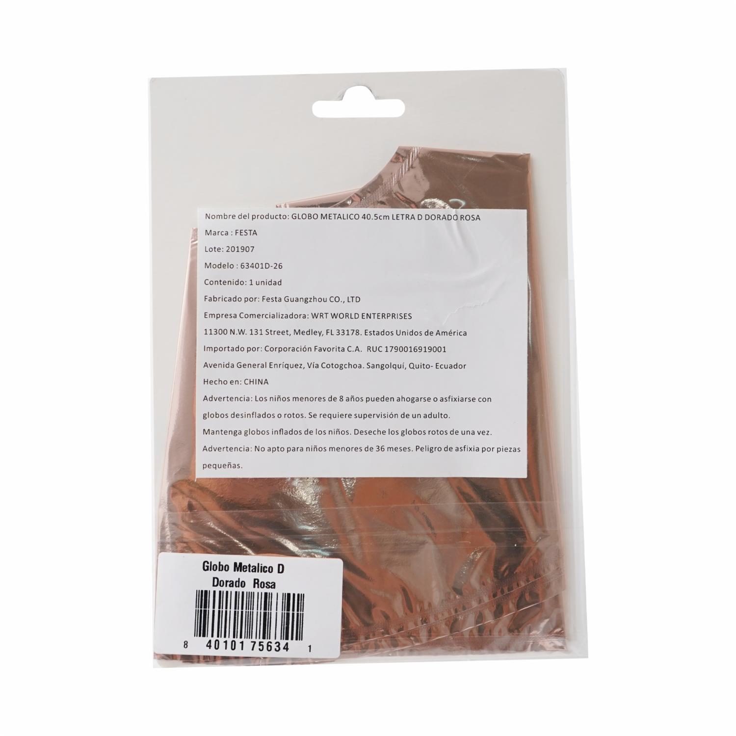 Globo Metálico Letra D Dorado Rosa BALLOON 40,5 Cm – BALLOON. Disponible en nuestros locales. Precio y stock pueden variar según la tienda.