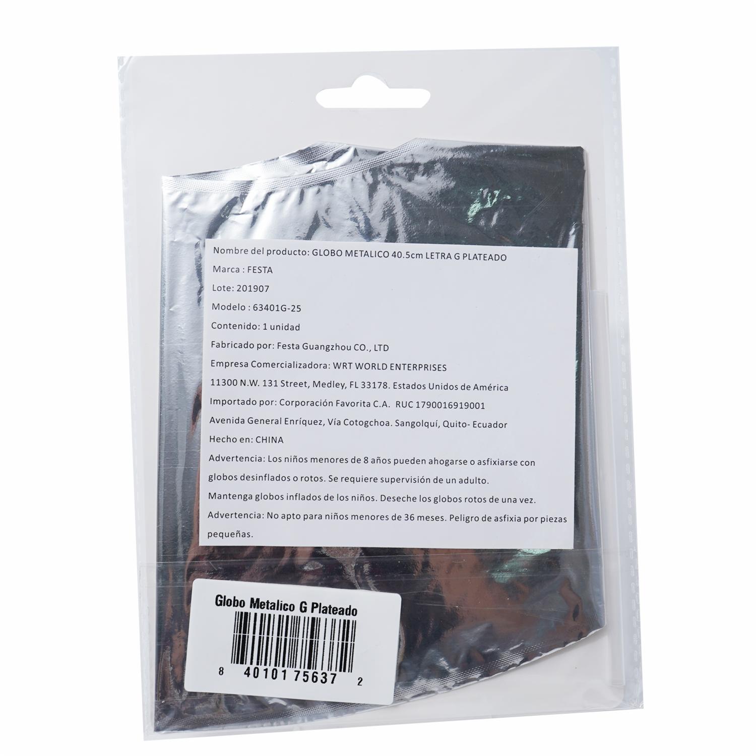 Globo Metálico Plateado BALLOON Letra G – BALLOON. Disponible en nuestros locales. Precio y stock pueden variar según la tienda.