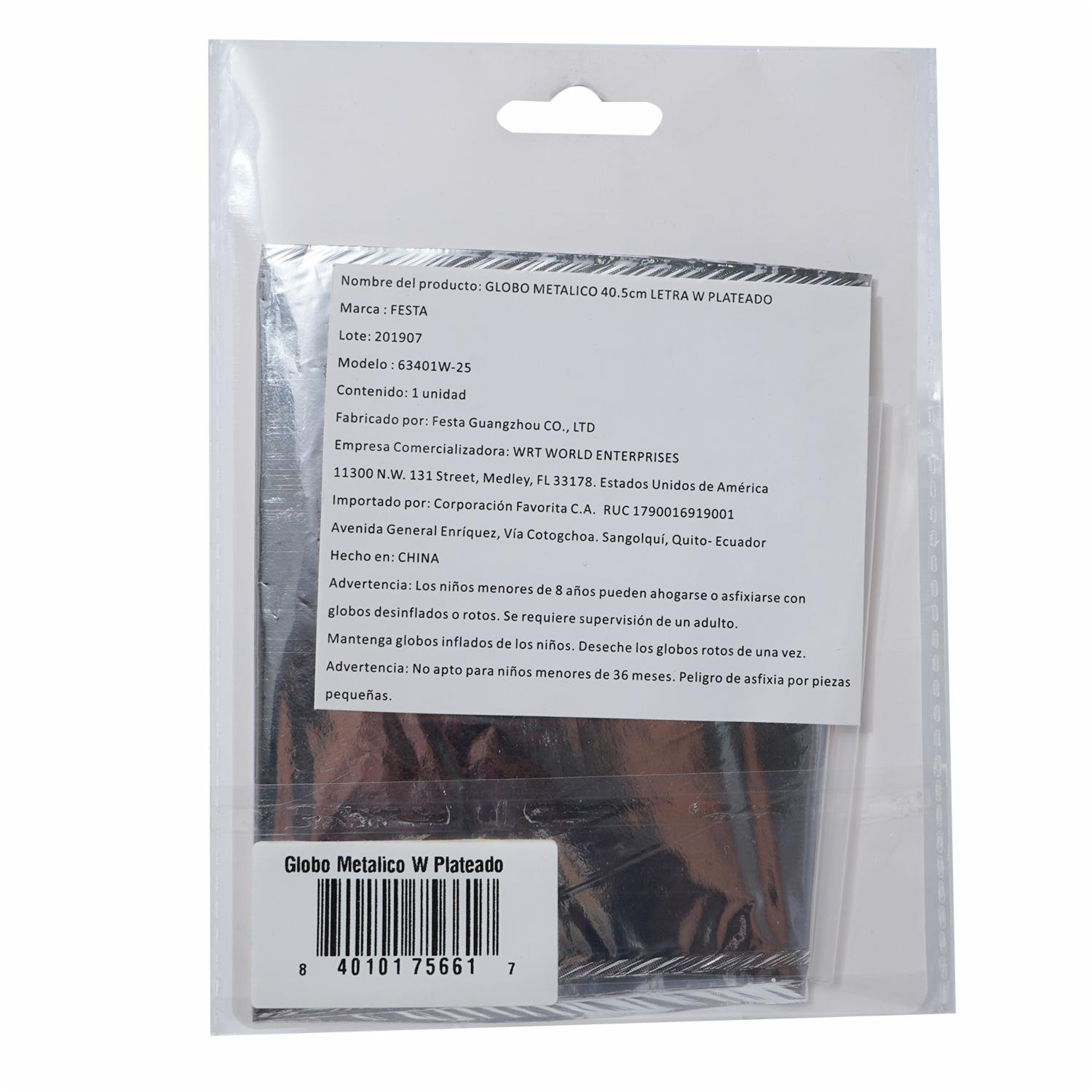 Globo Metálico Plateado BALLOON Letra W – BALLOON. Disponible en nuestros locales. Precio y stock pueden variar según la tienda.