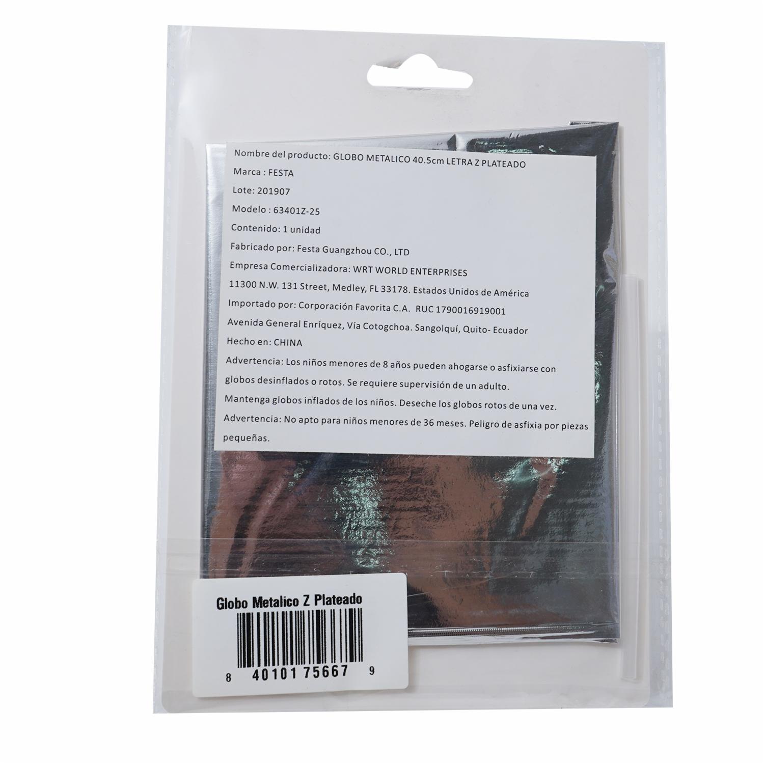 Globo Metálico Plateado BALLOON Letra Z – BALLOON. Disponible en nuestros locales. Precio y stock pueden variar según la tienda.