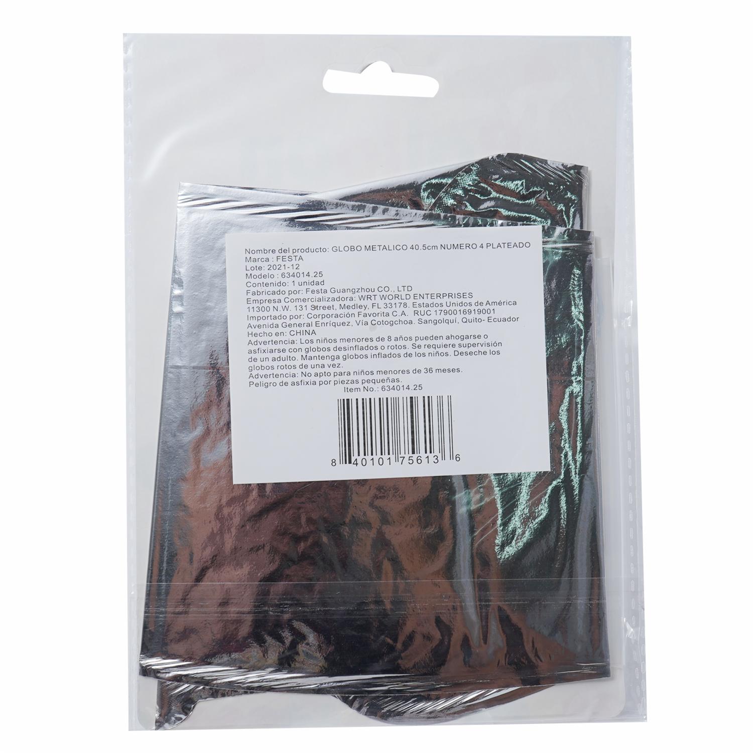 consultando preciosGlobo Metálico Plateado BALLOON Número 4 – BALLOON. Disponible en nuestros locales. Precio y stock pueden variar según la tienda.
