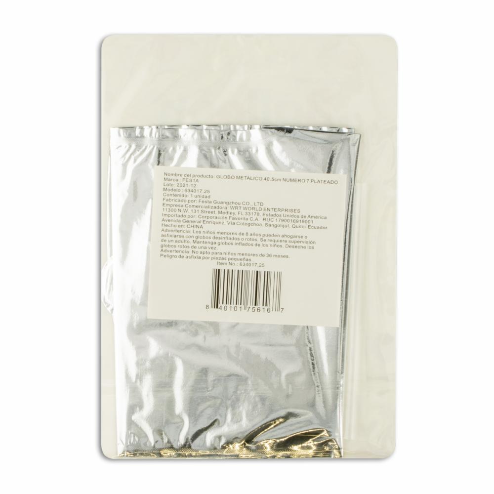 Globo Metálico Plateado BALLOON Número 7 – BALLOON. Disponible en nuestros locales. Precio y stock pueden variar según la tienda.