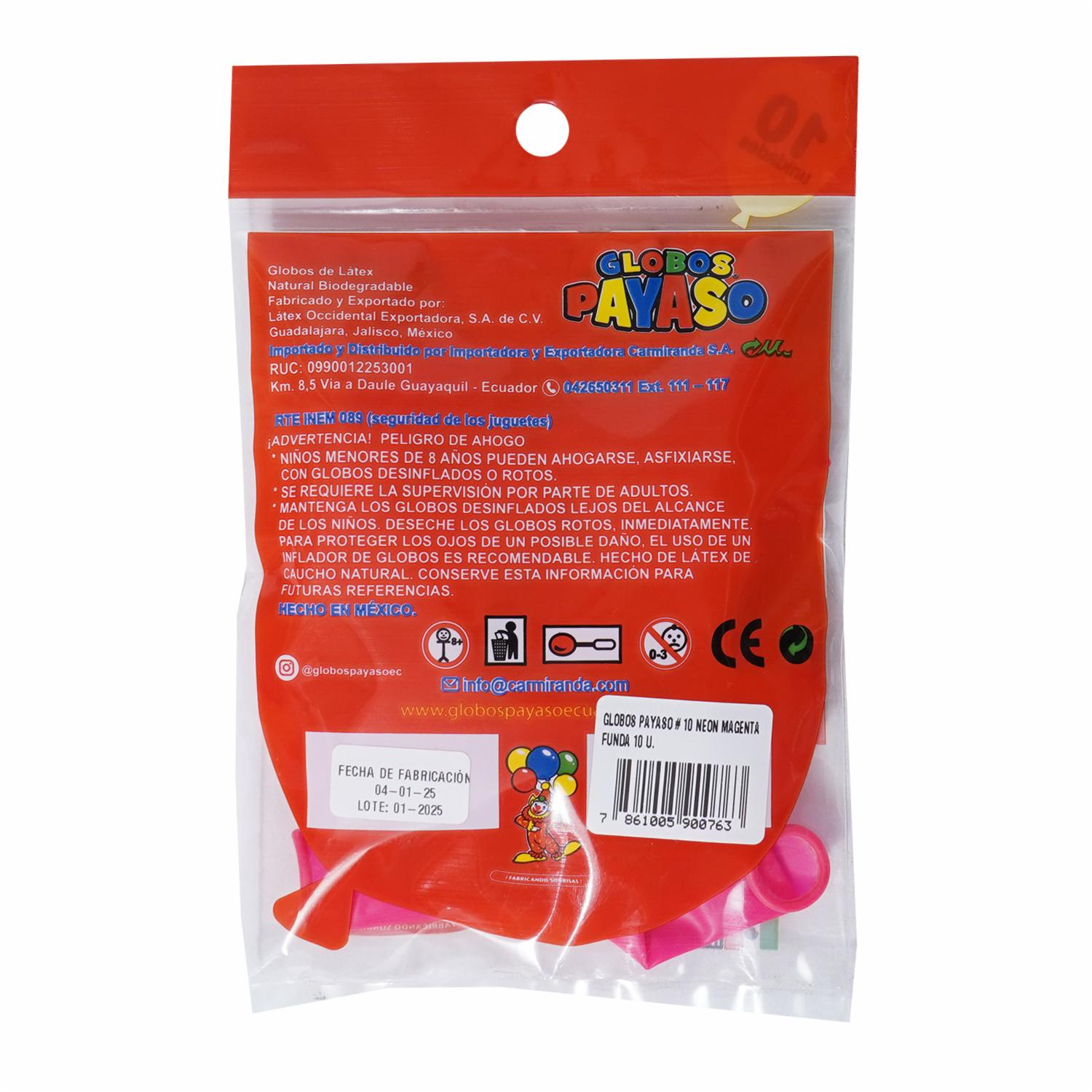 Globo N10 Neón Magenta GLOBOS PAYASO X 10 Uds