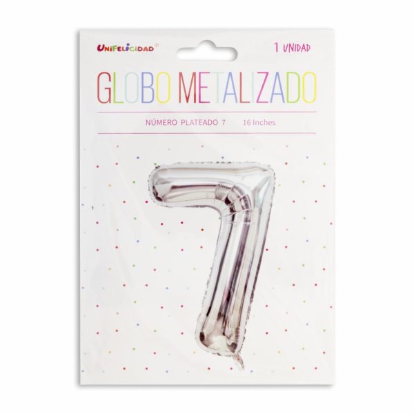Globo Número Plateado 7 UNIFELICIDAD 16 Pulgadas