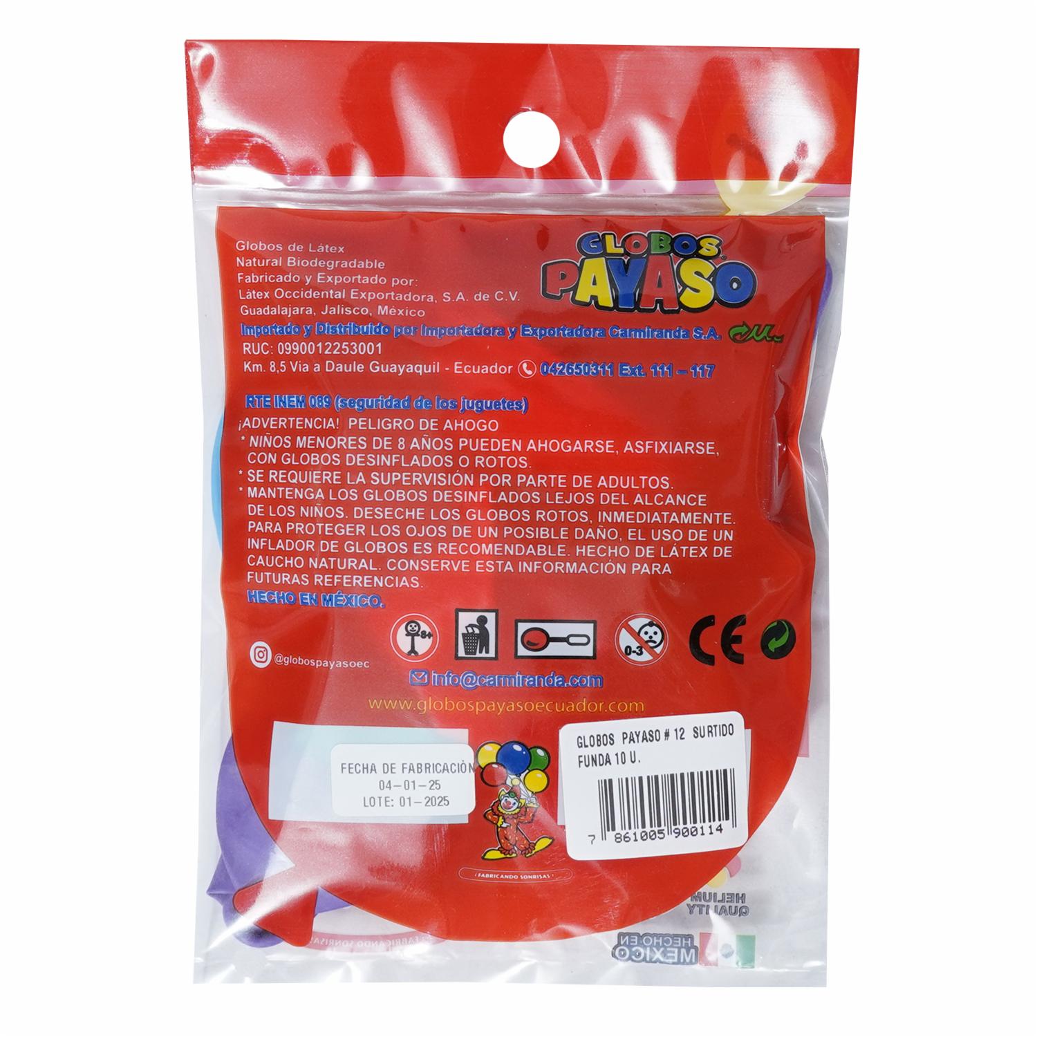 Globos Colores Surtidos GLOBOS PAYASO X 10 Uds