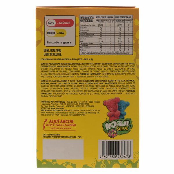 Déjate llevar por la explosión de colores y sabores de las gomitas MOGUL EXTREME, dulces y suaves que alegran cualquier momento. Perfectas para compartir o darte un capricho, su textura y sabor te harán volver por más. ¡Un toque de fantasía en cada gomita!