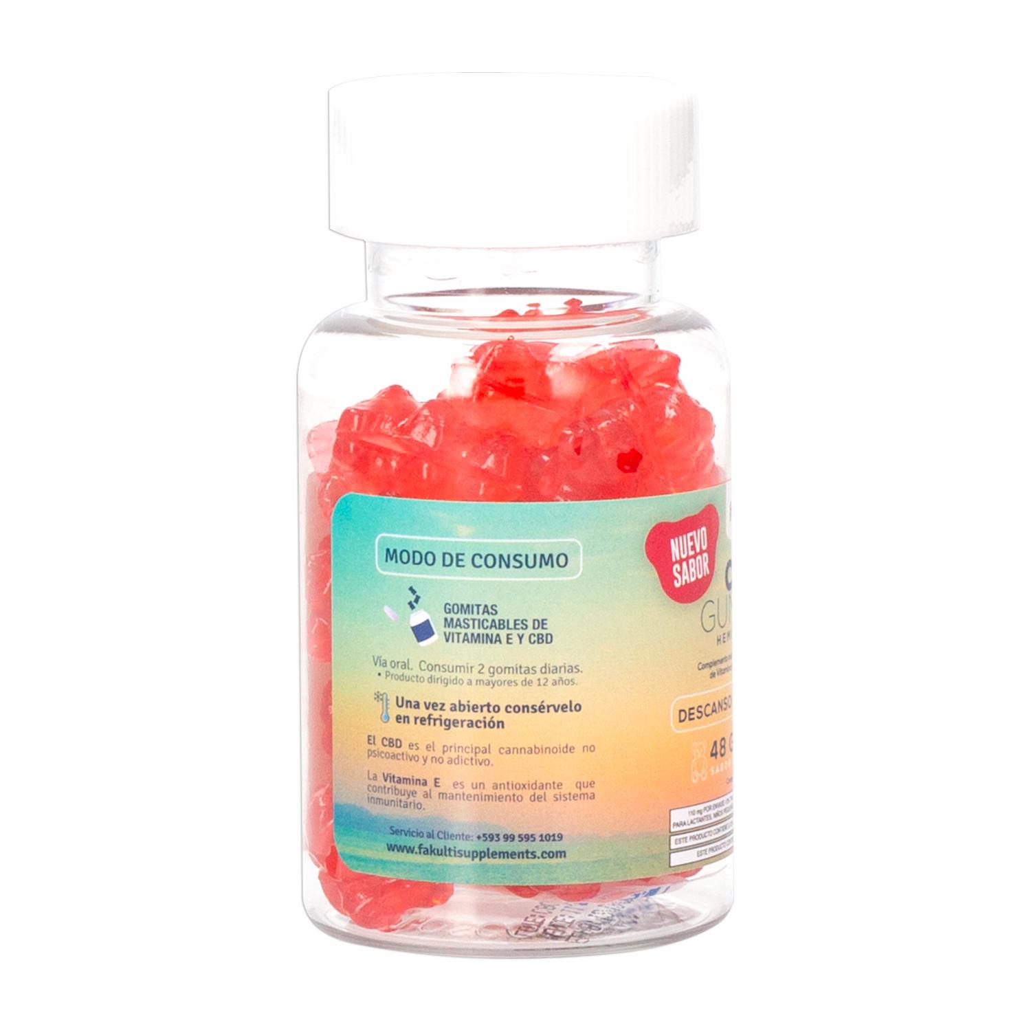 - Gomitas Masticables Elaboradas A Base De Vitamina E Y Cannabidiol (cbd). Contribuyen Al Mantenimiento Del Sistema Inmunitario Y Su Efecto De Descanso Y Relajación Ayuda A Reducir La Ansiedad, Estrés Y Mejor La Conciliación Del Sueño