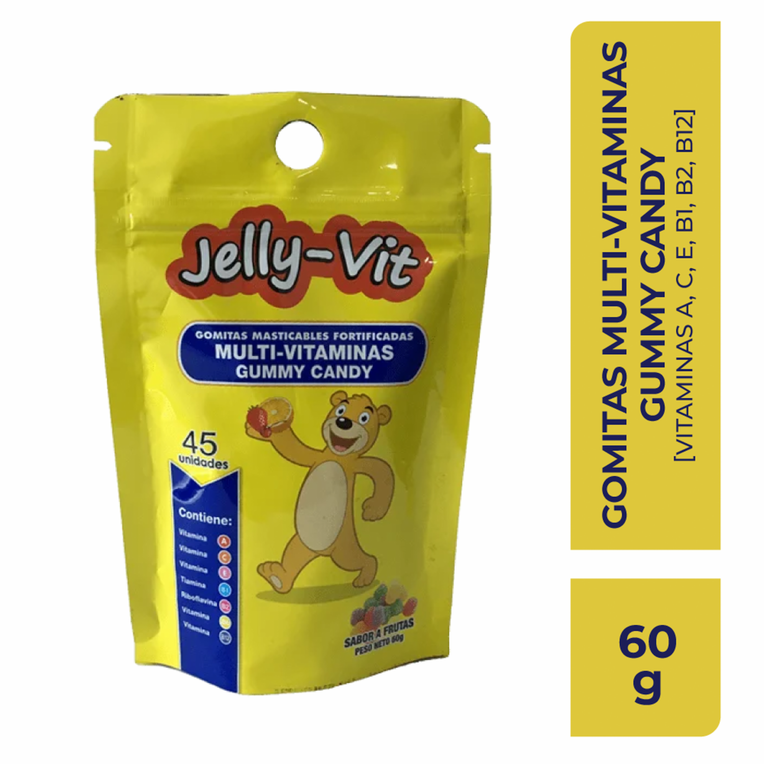 Gomitas Con Multivitaminas A, C, E, B1, B2, B6, B12 Sabor A Frutas JELLY-VIT 45 Uds 60 G