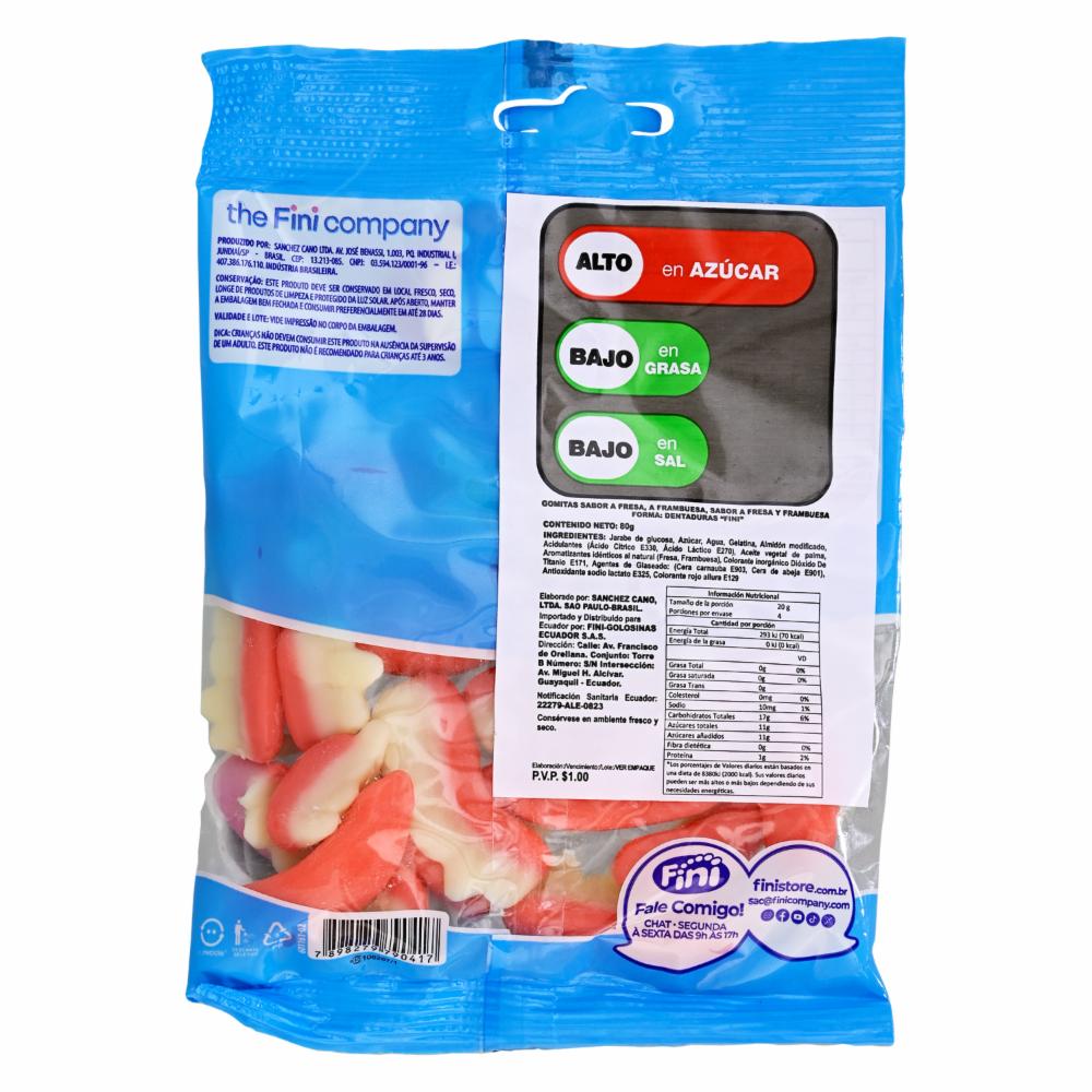 Gomitas Forma Dentaduras FINI 90 G – FINI. Disponible en nuestros locales. Precio y stock pueden variar según la tienda.
