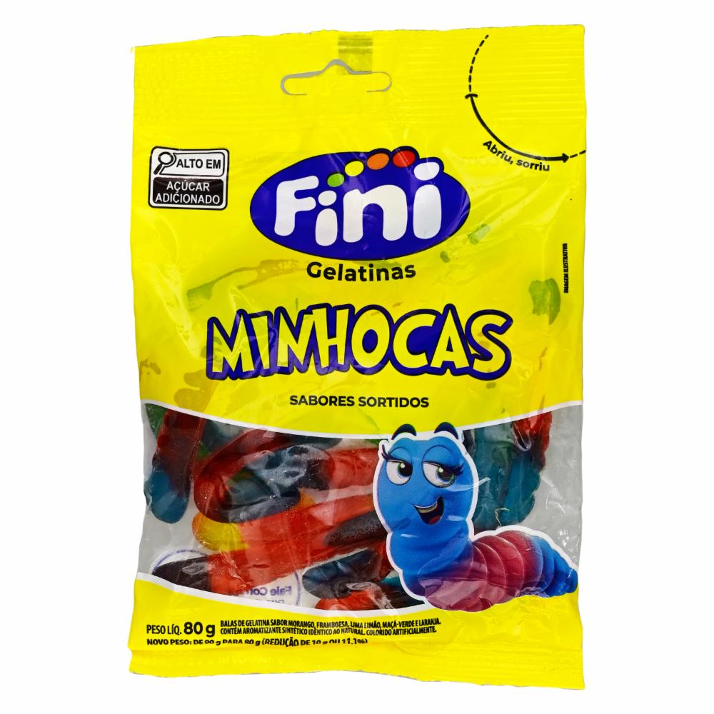 Deliciosas gomitas de gelatina, brasileña marca Fini con forma de gusanitos de sabores frutales. No contiene gluten y es 0% grasa trans