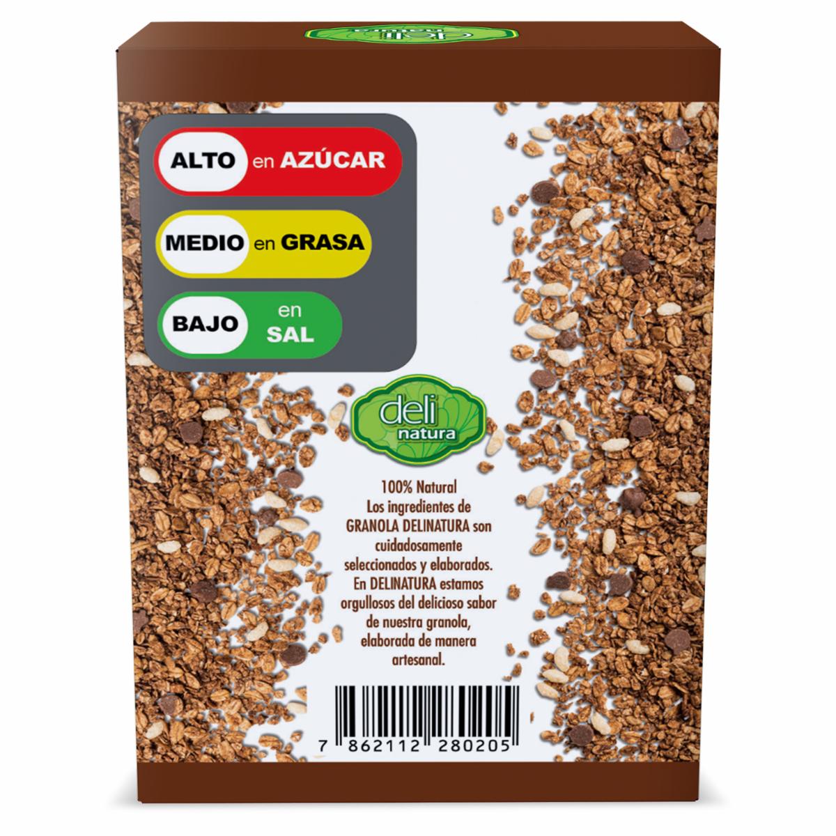 - Preparada con ingredientes cuidadosamente seleccionados, la Granola con chocolate DELINATURA es una opción nutritiva para comenzar tu día con energía